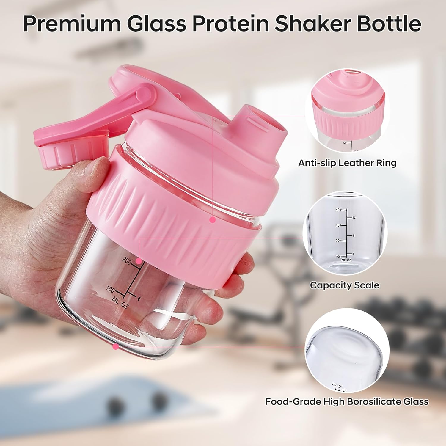 Premium Safety Features: Made from high-quality borosilicate glass, this glass protein shaker bottle is odorless, BPA-free, and lead-free, ensuring your drinks are safe