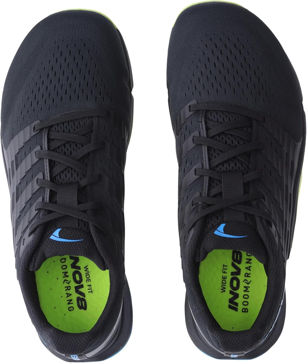 Fit Wide Toe Box Footbed 6mm Boomerang Footbed Midsole POWERFLOW MAX Midsole Stack 12 mm Heel / 8 mm Forefoot Sole Compound INOV8 Rubber Vegan Yes