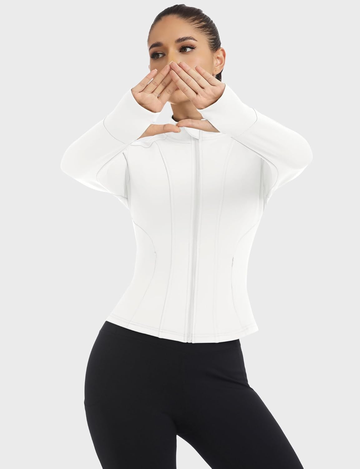 Women’s Workout Jacket 2025 Fall Lightweight Zip Up Yoga Jackets Cropped Athletic Slim Fit Tops with Thumb Holes Women Fashion Breathable Flattering Outdoor Sweatshirt Super Comfortable Athleisure Casual Long Sleeve Sportwear with Zipper Pockets