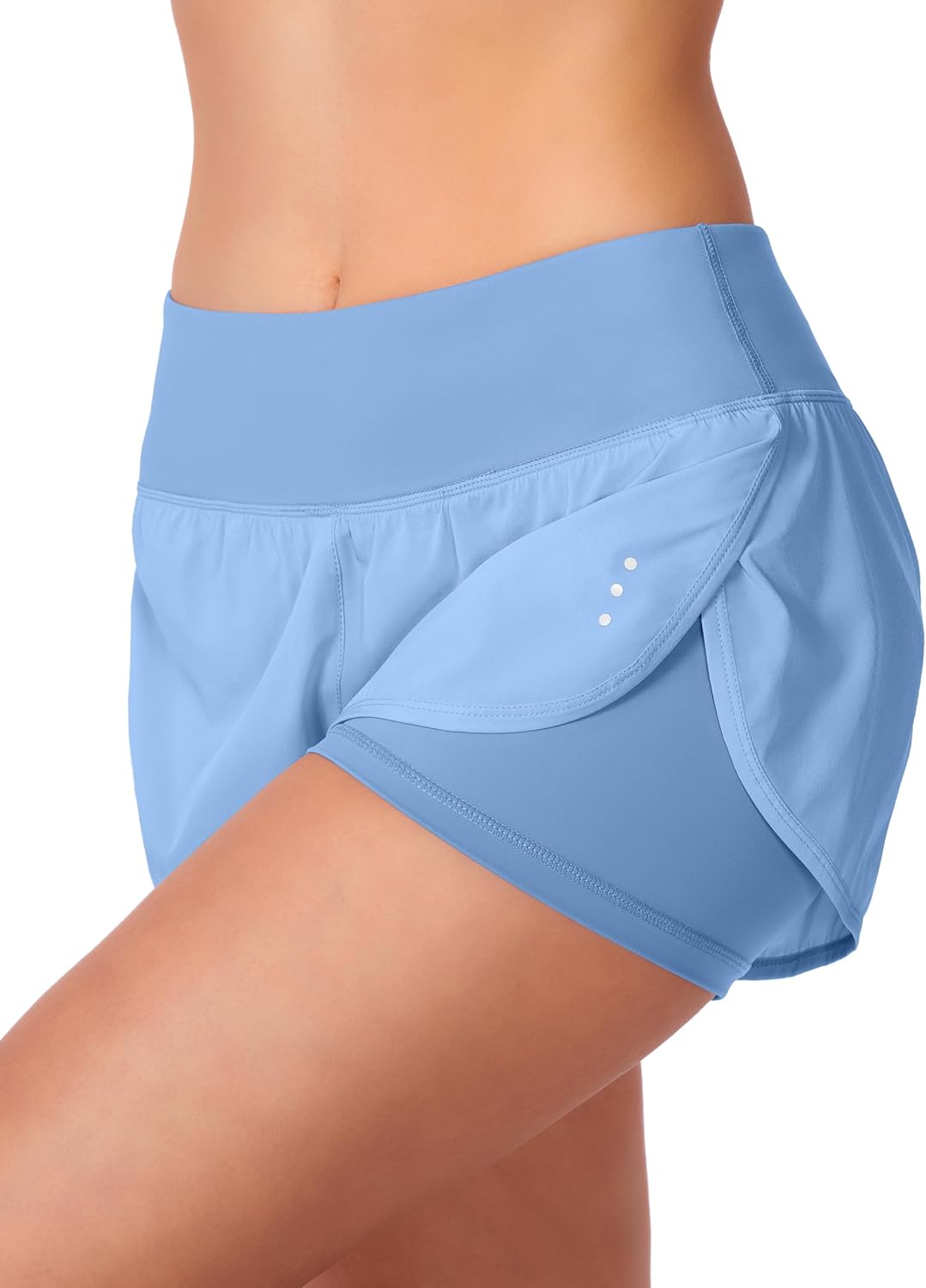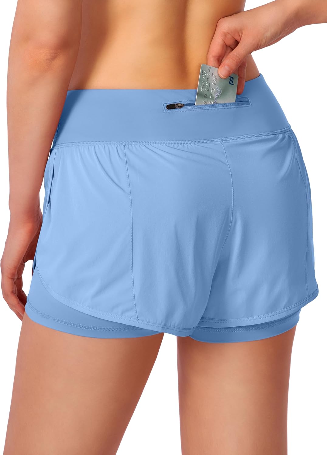 Soothfeel Women’s Running Shorts with Zipper Pocket 2 in 1 High Wasited Workout Athletic Gym Yoga Spandex Shorts for Women