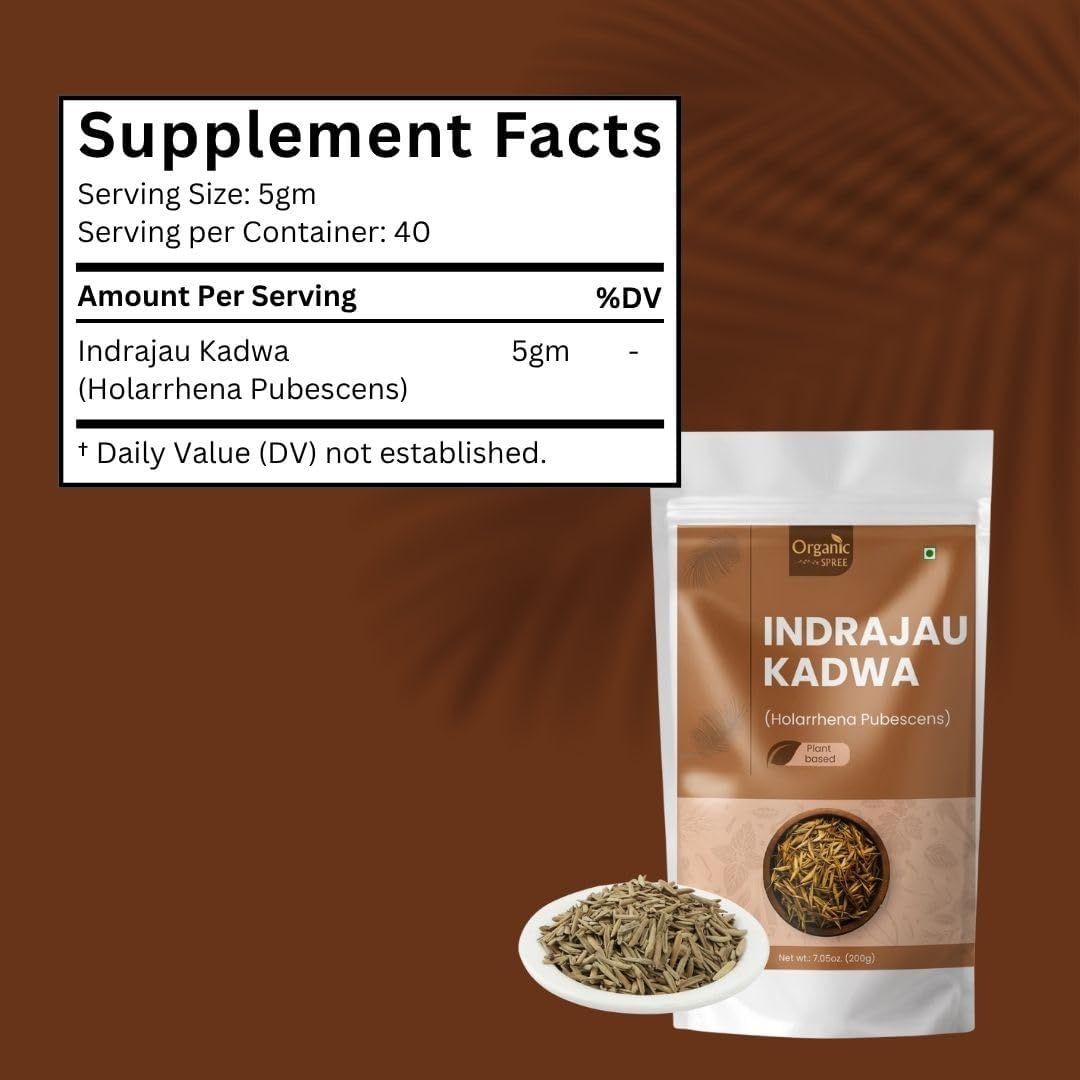 Organic Spree Gymnema & Indrajau Kadwa is a powerful Ayurvedic combination of Gymnema Sylvestre and Holarrhena Pubescens (Indrajau Kadwa), crafted with authenticity and care. Each set includes 120 USDA Organic Gymnema tablets and 200g Indrajau Kadwa herb, carefully selected for purity and natural integrity. Gymnema is a traditional Ayurvedic herb long respected for its role in classical formulations. Indrajau Kadwa is valued in Ayurveda for its naturally bitter profile and traditional uses in herbal preparations. Together, they form a balanced, plant-based duo rooted in Ayurvedic wisdom. This supplement is USDA Organic, non-GMO, and gluten-free, ensuring a pure and mindful daily experience.