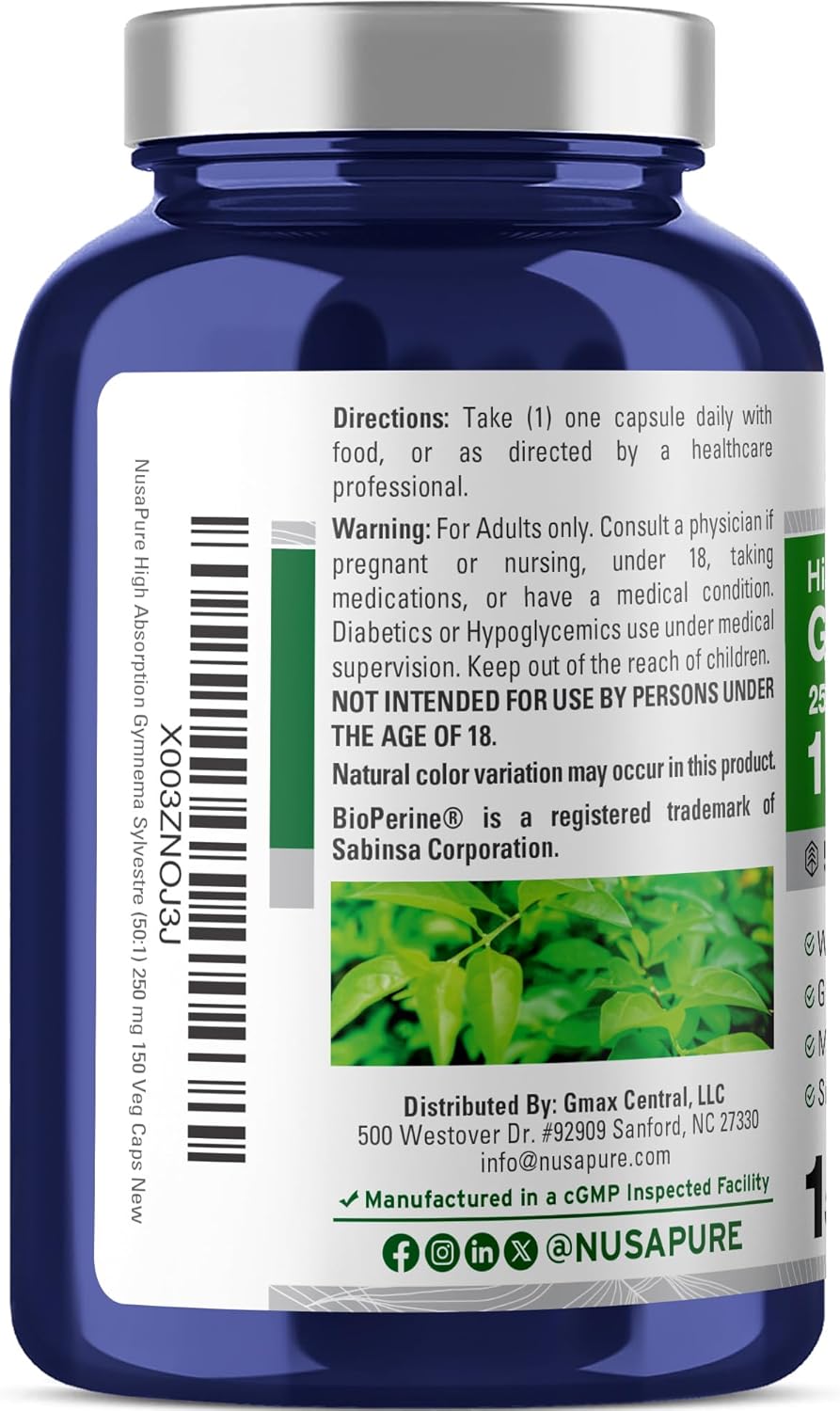 Be the first to review “NusaPure Gymnema Sylvestre 50:1 Extract, 250 mg Equivalent to 12,500mg Per Vegan Caps – 150 Count (Non-GMO, Vegan, Bioperine)”