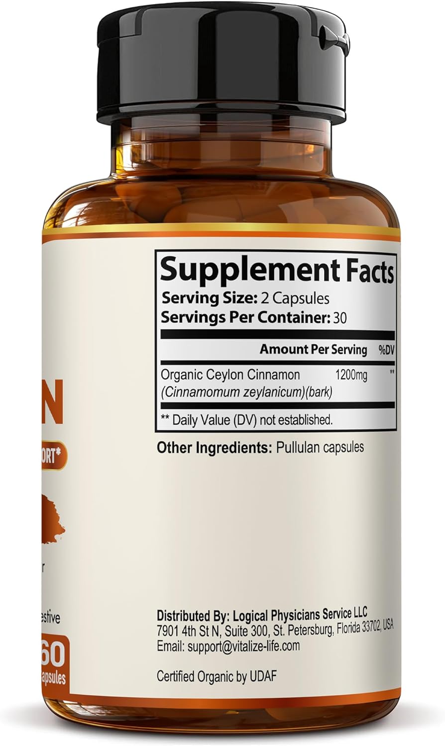 1200MG HIGH POTENCY FORMULA: Experience the full benefits of Organic Ceylon Cinnamon with a powerful 1200mg daily serving. Vitalize Life provides a precise 30-day supply of “True Cinnamon” pills to support your daily metabolic goals and overall wellness.