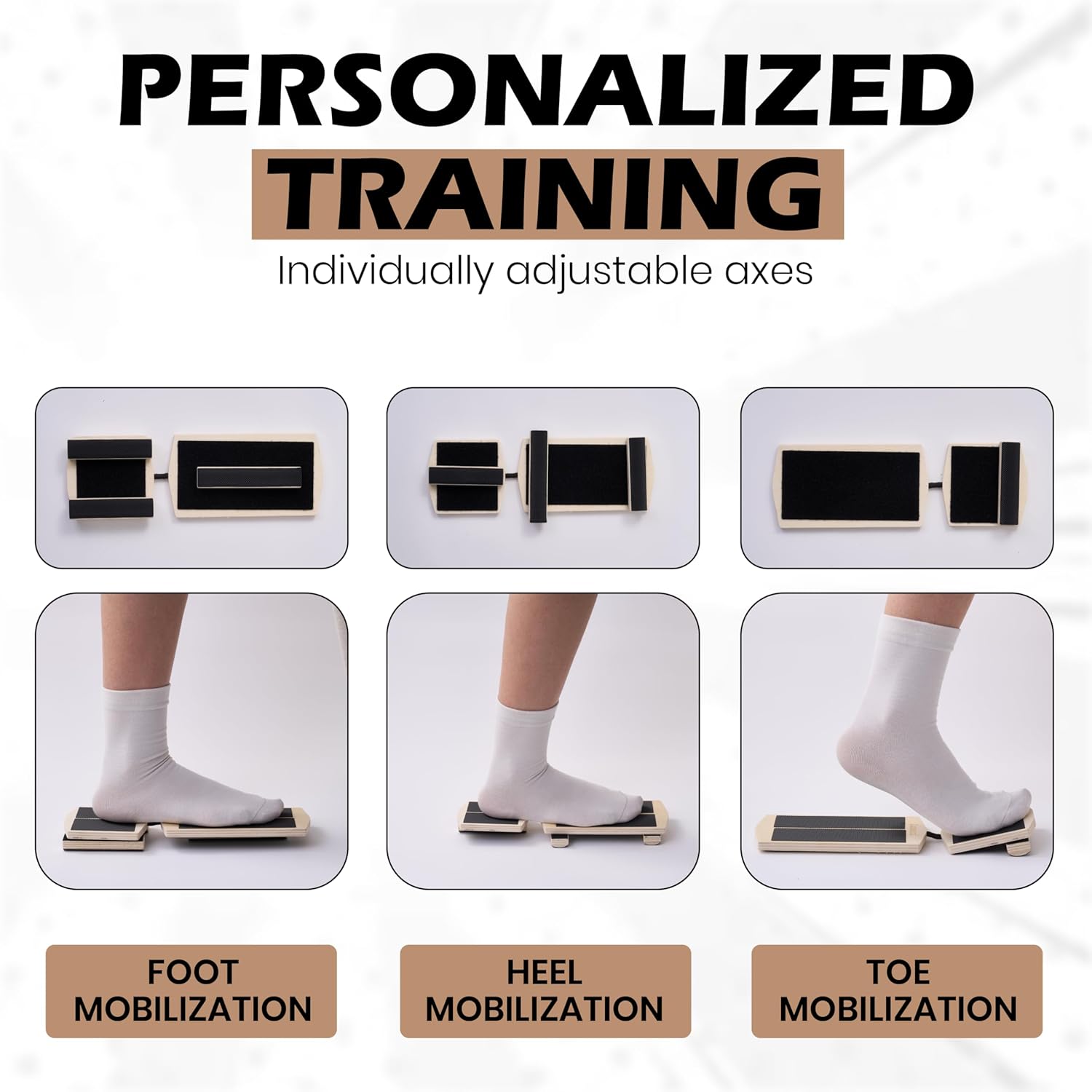 𝗣𝗿𝗲𝗺𝗶𝘂𝗺 & 𝗣𝗼𝗿𝘁𝗮𝗯𝗹𝗲 𝗗𝗲𝘀𝗶𝗴𝗻: Crafted from durable wood with a textured non-slip surface for secure training. Lightweight, compact, and accompanied by a carry bag, making it easy to continue your ankle mobility and strengthening routine at home, gym, office, or while traveling.