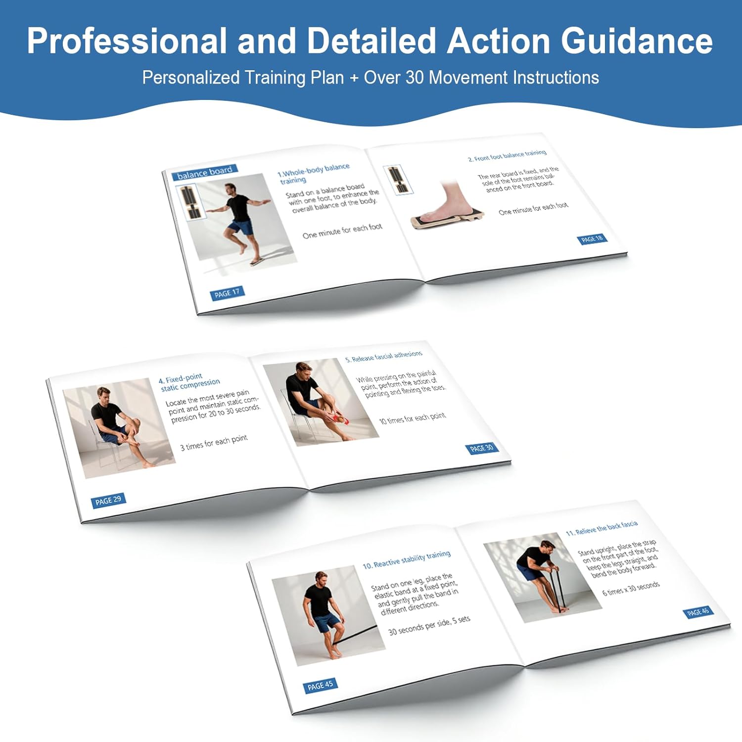 3.Suitable for All Levels Gyms, sports fields, outdoors, post-operative rehabilitation, etc. It includes training guidance for the feet and ankles. From basic stability exercises to dynamic challenges, it can adapt to different skill level ensures the correct and safe execution of each movement