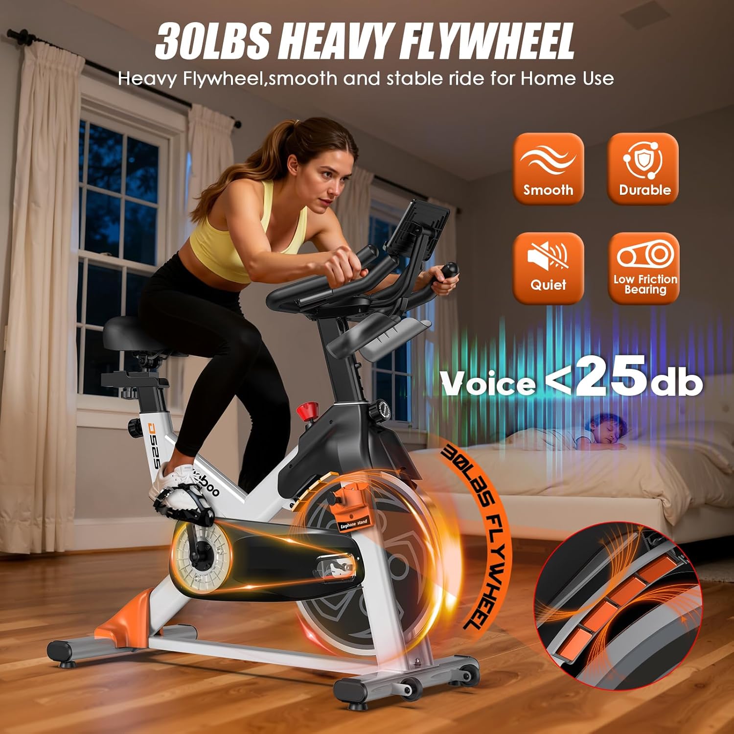 【Advanced Magnetic Resistance System for Silent & Maintenance-Free Riding】 Experience whisper-quiet performance with our state-of-the-art magnetic exercise bike. Unlike traditional felt-pad systems that require frequent replacements, our magnetic resistance delivers precise, smooth adjustments with zero maintenance. Combined with a maintenance-free belt drive operating below 25dB, this stationary bike ensures virtually silent workouts – perfect for apartments, home offices, and late-night sessions. The indoor cycling bike provides consistent resistance without friction noise, making it ideal for exercise bikes for home use where quiet operation is essential.
