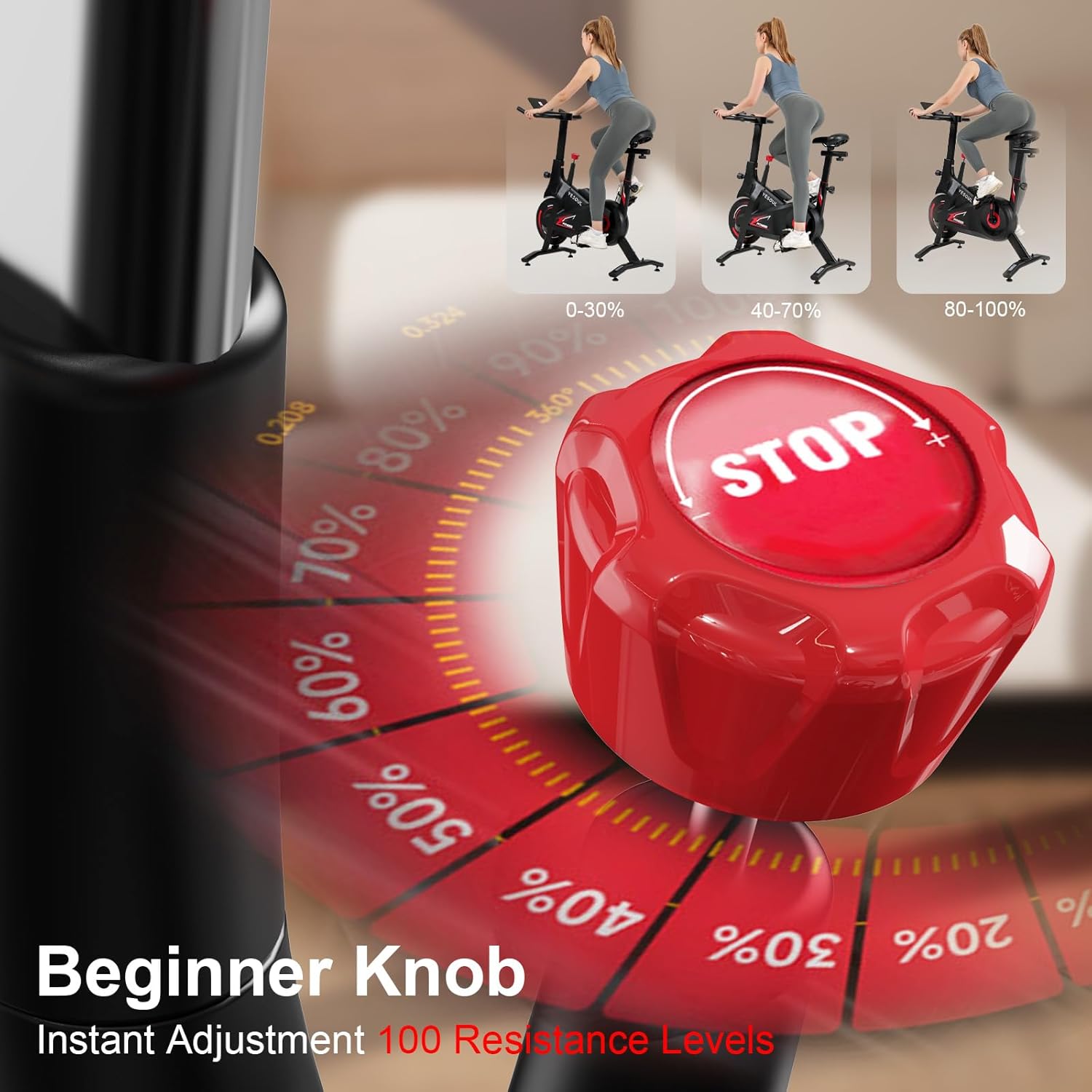 【100-Level Silent Magnetic Resistance – Train Anytime】 Equipped with 100 adjustable levels of magnetic resistance, this bike allows you to fine-tune every ride to match your fitness goals. The whisper-quiet belt drive system ensures smooth and silent operation, so you can work out early in the morning or late at night without disturbing family members, neighbors, or roommates. From gentle recovery spins to high-intensity hill climbs, this home exercise bike delivers a versatile and customizable training experience that grows with your progress