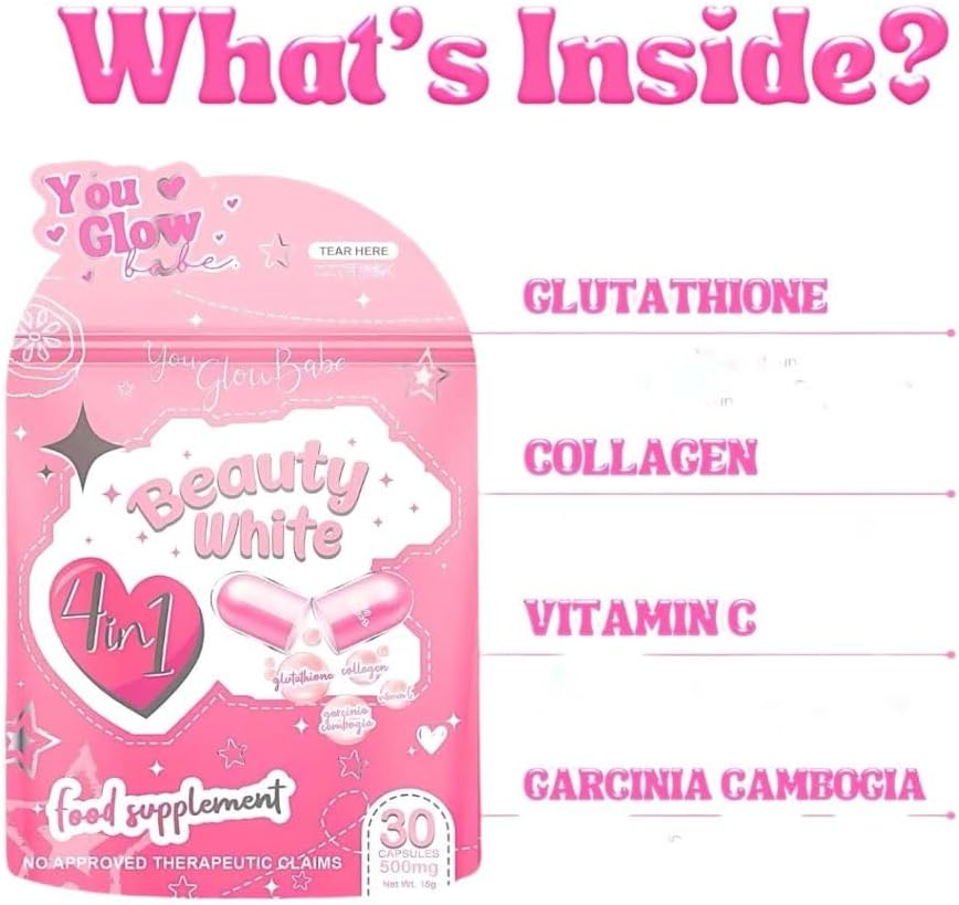 Experience the transformative power of You Glow Babe BEAUTY WHITE Glutathione Capsules and unlock the secret to radiant, flawless skin.
