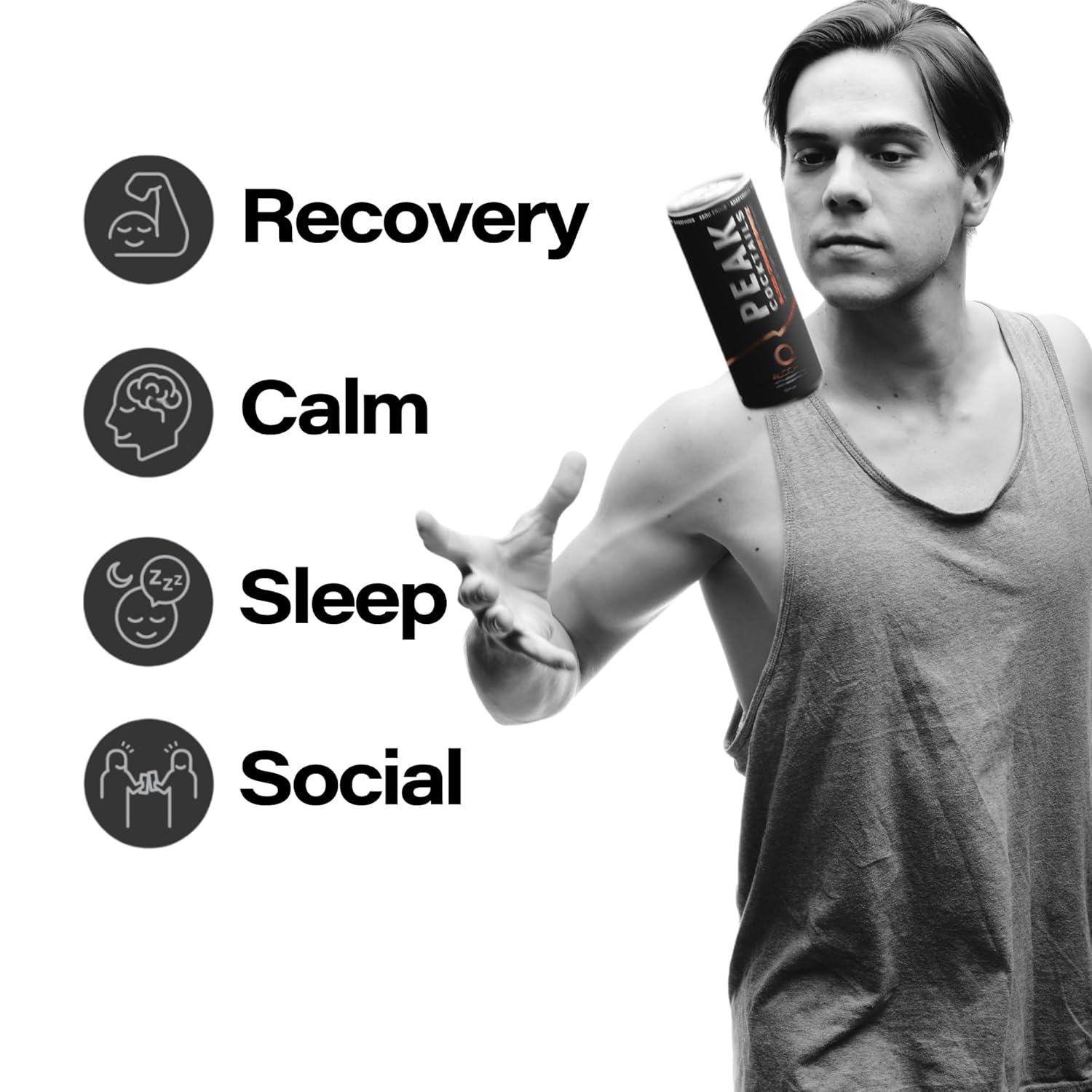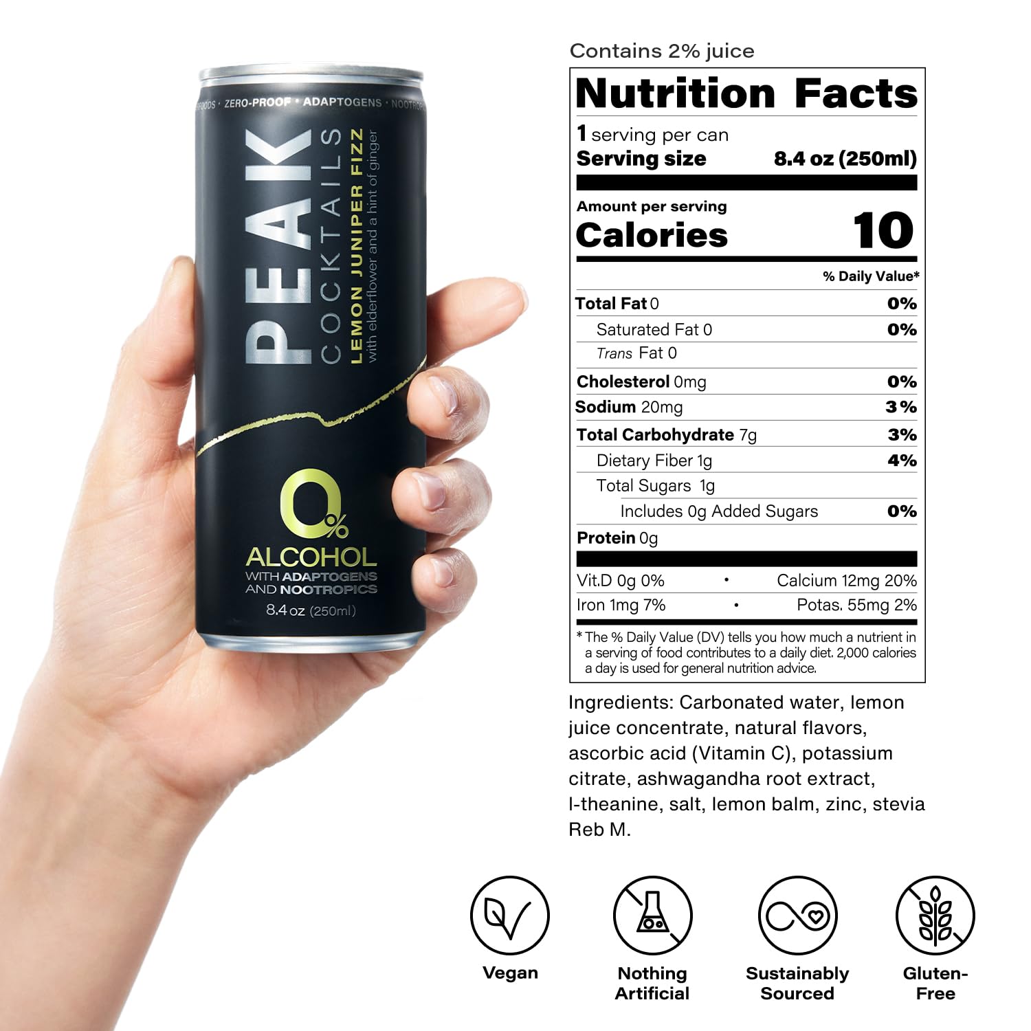 Peak Cocktails Non-Alcoholic Cocktail | Adaptogens, Nootropics, Superfoods for Recovery, Calm, Sleep | Ashwagandha, Tart Cherry, L-Theanine | Mixologist-crafted | Lemon Juniper Fizz | 8.4 oz, 12-Pack