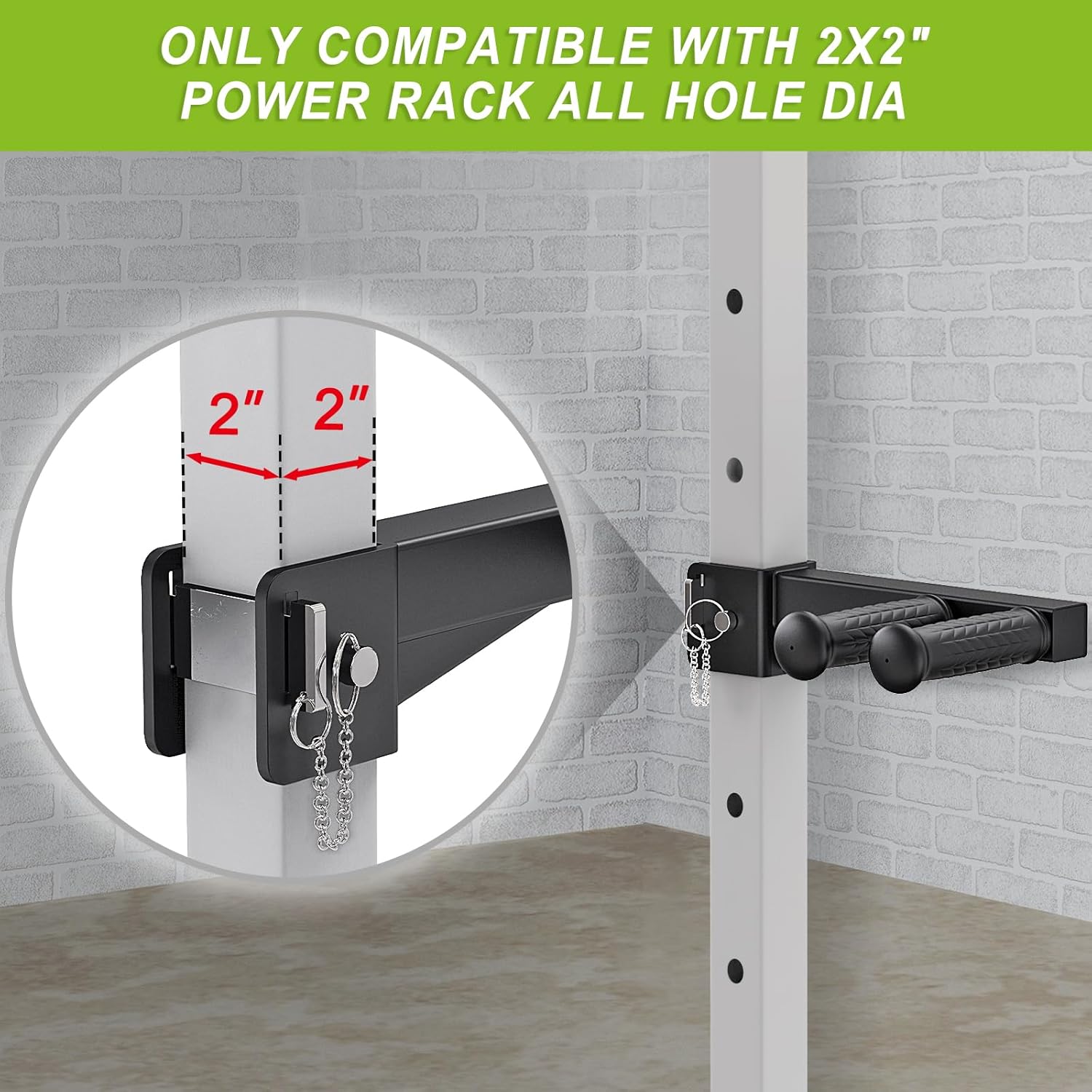 【EASY TO INSTALL AND ADJUST】Simply put in the power rack, the pins are inserted into the holes of the squat rack to secure it, and lock with metal inserts. Easily adjust the height and position of the dip bars according to your preference and exercise, make the most of your exercise time