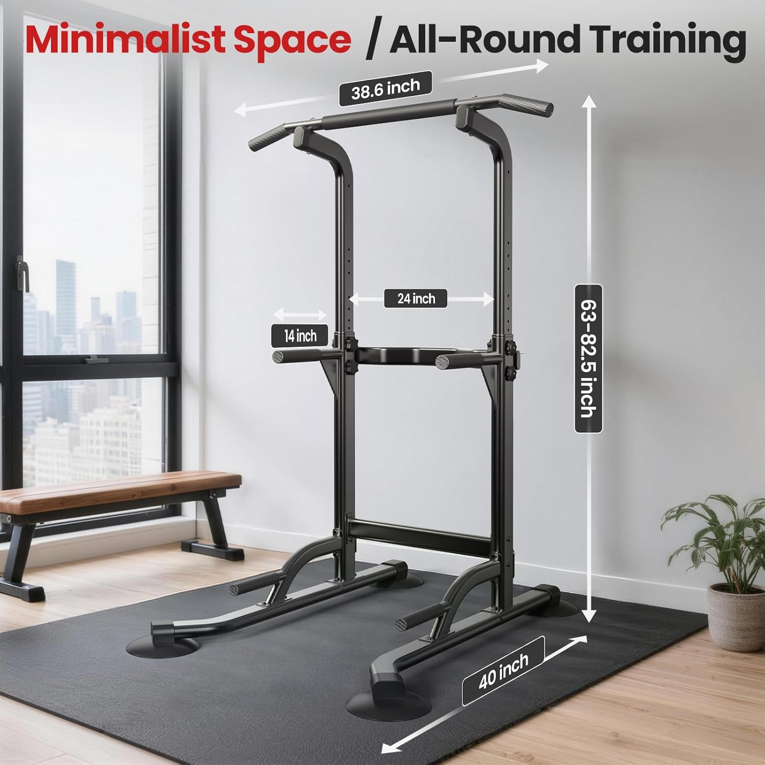 【Easy Assembly & Space-Saving Design】Dskeuzeew pull up rack includes clear instructions and all necessary tools—set up in just 30 minutes. Its pull up and dip bar compact footprint fits easily in apartments, garages, or home offices, offering full gym.The pull up bar dip station functionality without wasting space