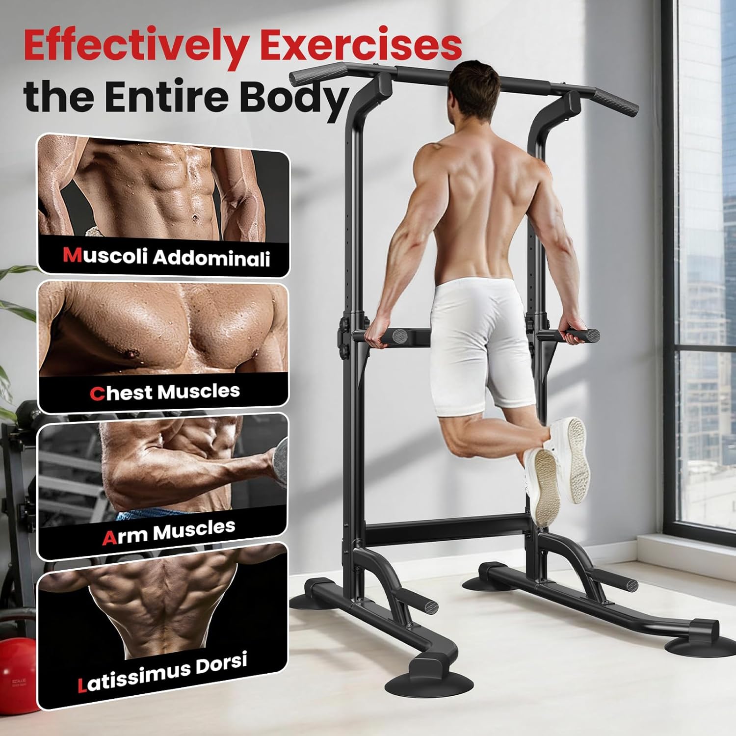 【10-Level Height Adjustment for All Users】Dskeuzeew power tower pull up bar two quick-lock knobs let you adjust the bar height from 63″” to 82.5″” in seconds. Whether you’re 4’11″” or 6’5″”, everyone can find their perfect, ergonomic grip position. The pull up and dip station perfect for shared home gyms offices, or outdoor workouts – no more compromising on form or comfort