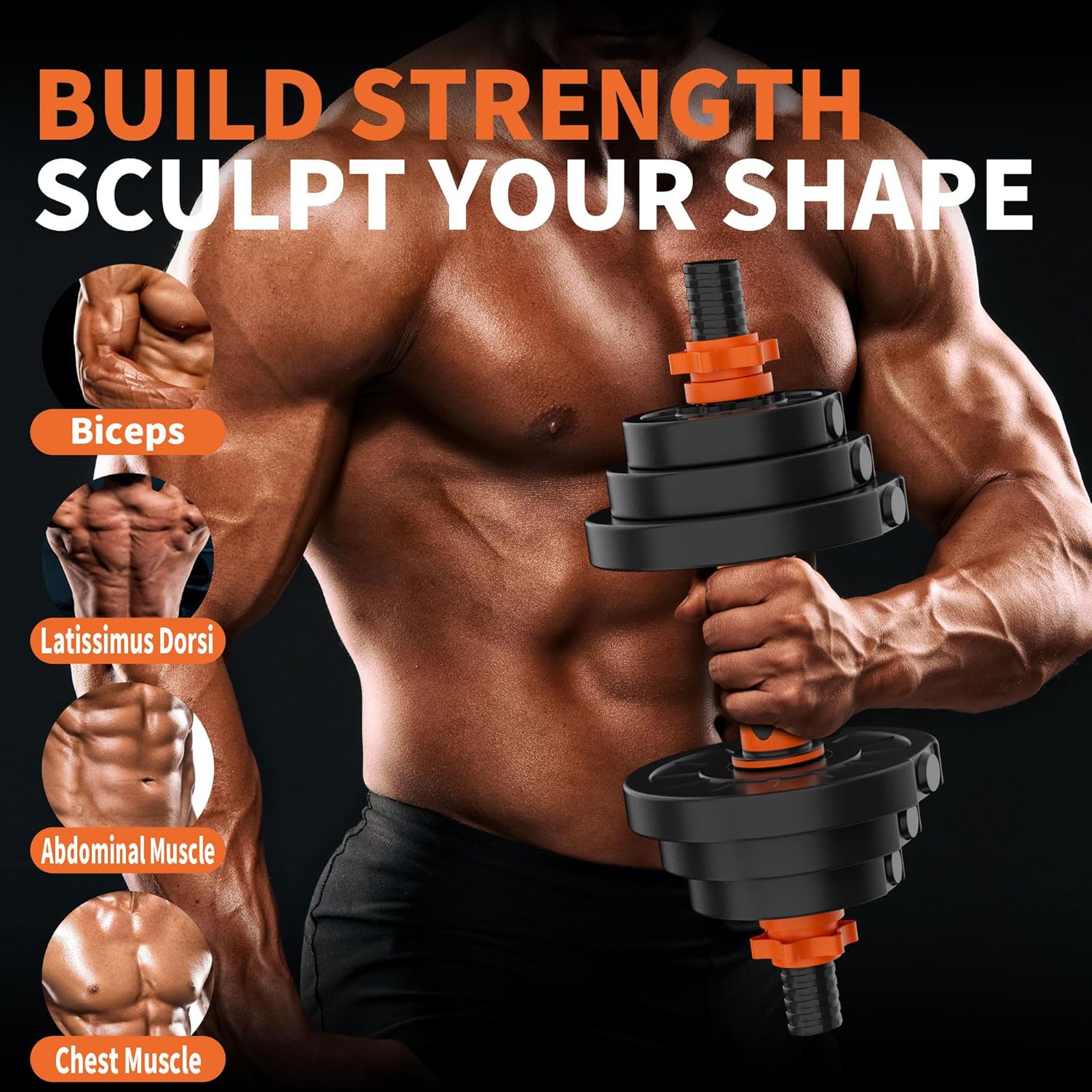 【4-in-1 Full-Body Versatility】Transform your routine with ease—switch between dumbbells, barbell, kettlebell, and push-up stand to train chest, legs, back, arms, and more. One set, endless possibilities for men & women. 【Secure Dual-Lock System】Engineered with upgraded double-lock safety nuts and anti-slip threading to eliminate wobble and plate shift. Lift with total confidence—even during your most intense reps. 【Ergonomic Foam Comfort Grip】The sweat-resistant, anti-fatigue handlebar design keeps you in control while reducing hand strain. Ideal for high-rep sessions or long-duration workouts. 【Built to Last】Crafted from premium PE materials and a cement-iron blend, these weights are rust-resistant, shock-absorbing, and engineered to withstand rigorous daily use. 【Effortless Assembly & Adaptability】Set up in minutes and easily switch configurations to match your workout style—perfect for home gyms and fitness enthusiasts who crave versatility.