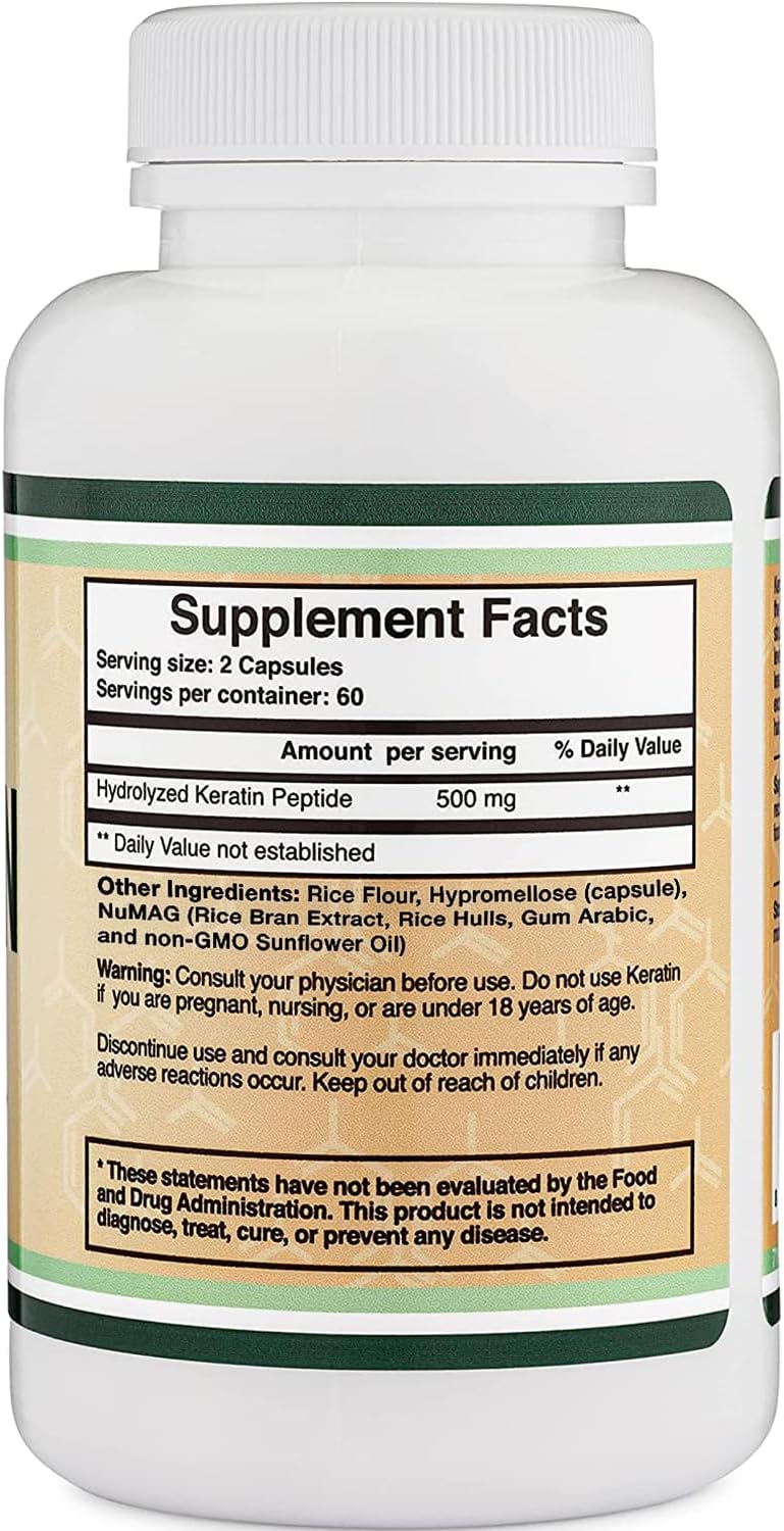 Keratin Hair Growth Vitamin (500mg per Serving, 120 Pills) Keratin Hair Treatment for Men and Women (Vital Protein for Hair, Skin, and Nails) Vitaminas para El Cabello, Vegan Safe by Double Wood