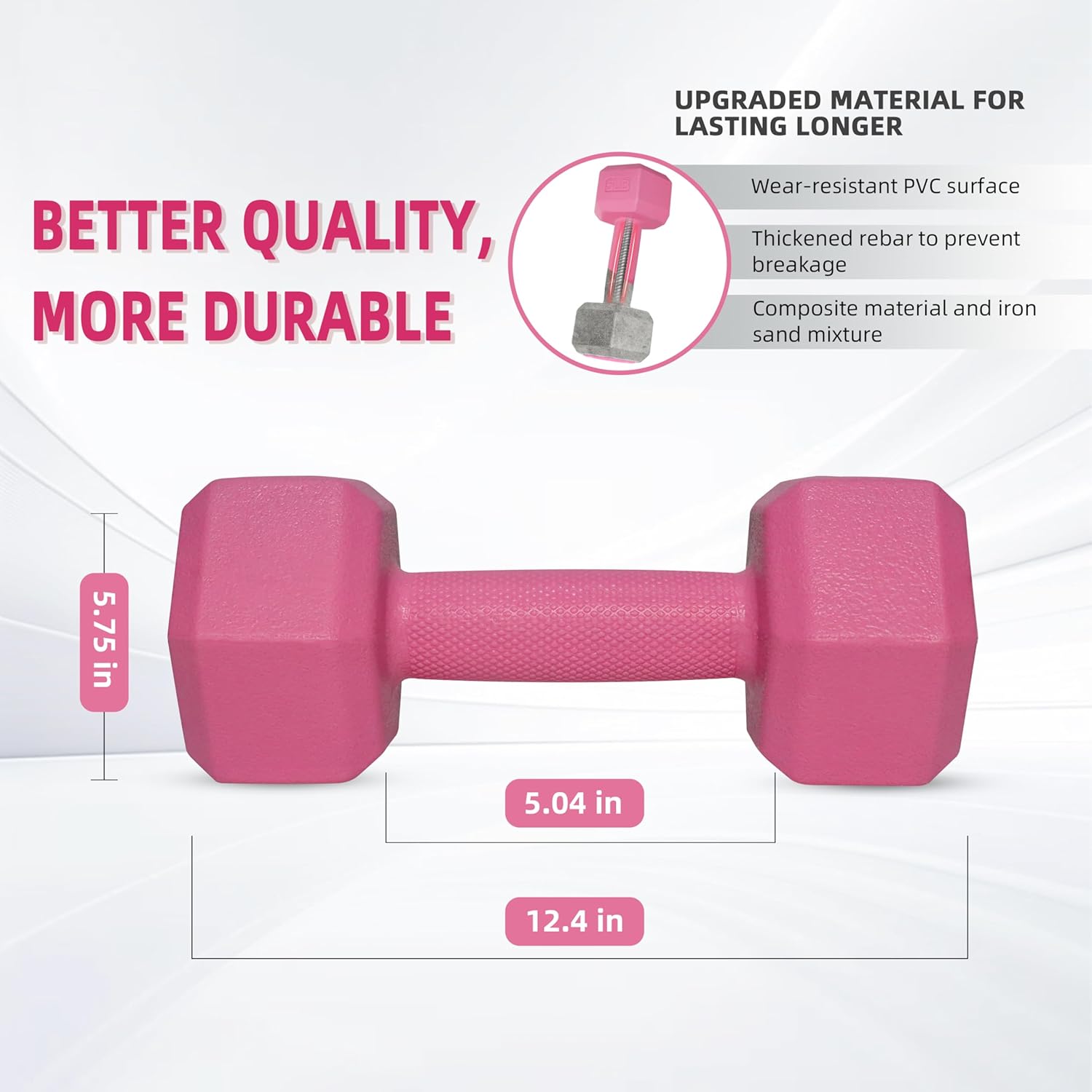 [MORE DURABLE] Constructed with premium composite materials and filled with a cement mixture, the dumbbell features a reinforced steel bar in the center, making it less prone to breakage and more durable.