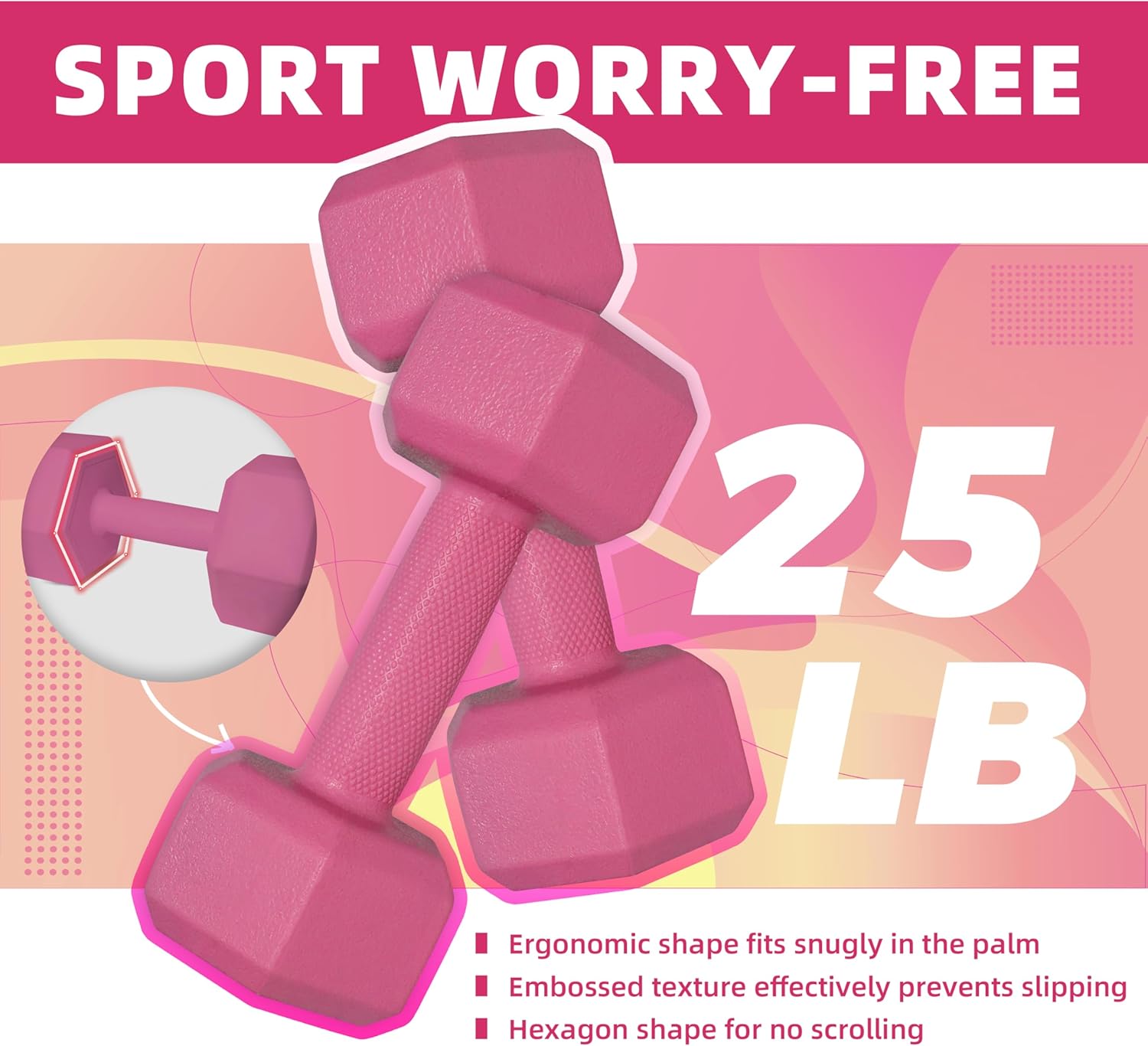 [NO-ROLL HEXAGON] The hexagonal design on both sides of the dumbbell ensures it stays securely in place during workouts or storage, preventing any rolling.