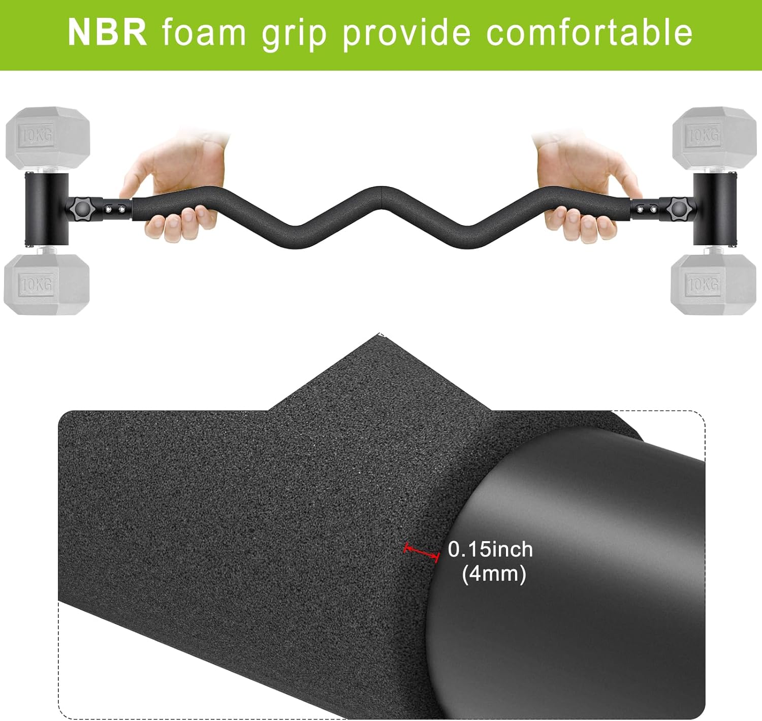 【Comfortable and Safe】The EZ Curling Bar features an angled grip that reduces wrist tension for more comfortable bicep curling. Foam-lined clamps ensure a secure grip on most dumbbells, promoting a safe and efficient workout