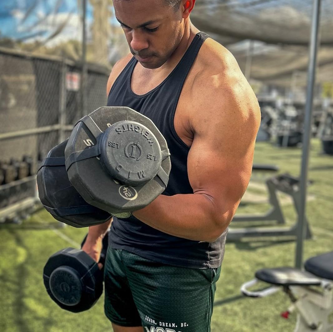 Simply slide the elastic straps around the end of the dumbbell and your progressive overload begins.