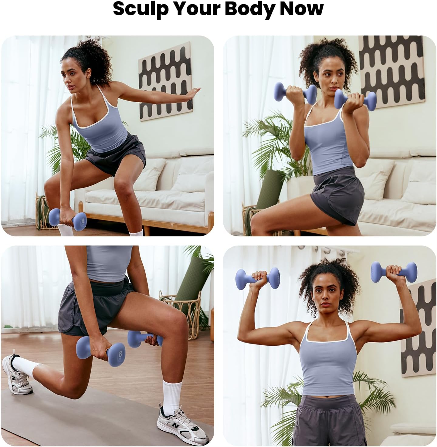 No More Slipping or Hand Pain: The 8 lb dumbbells set of 2 features an ergonomic, non-slip curved handle, providing a comfortable, secure grip during strength training, even when your palms sweat.