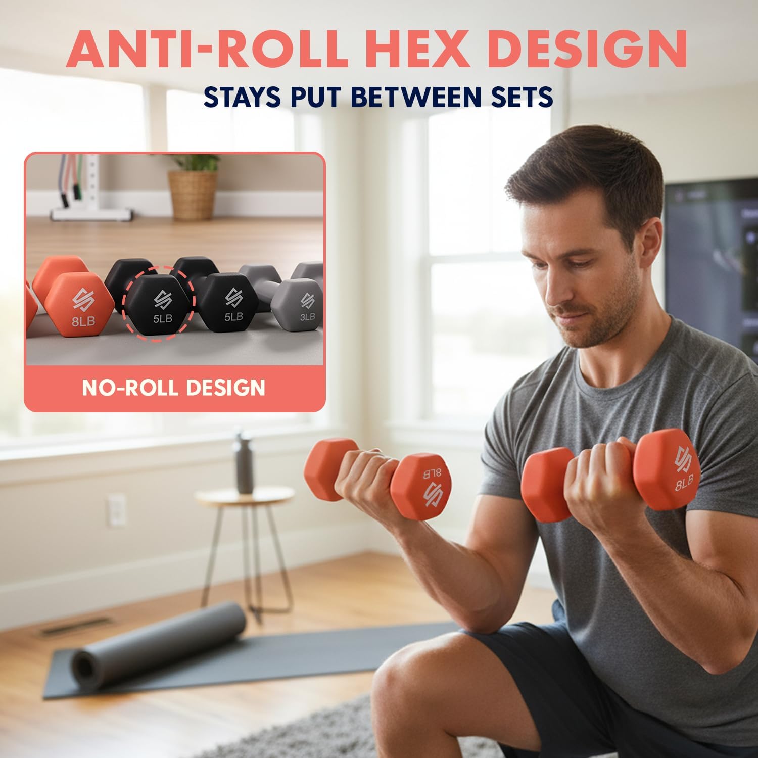 ANTI SLIP AND ROLL: Exercising indoors and outdoors is now easier than ever, thanks to our neoprene-coated dumbbells’ anti-slip and roll feature! Train anywhere you like, indoors or outdoors! This dumbbell kit is portable!