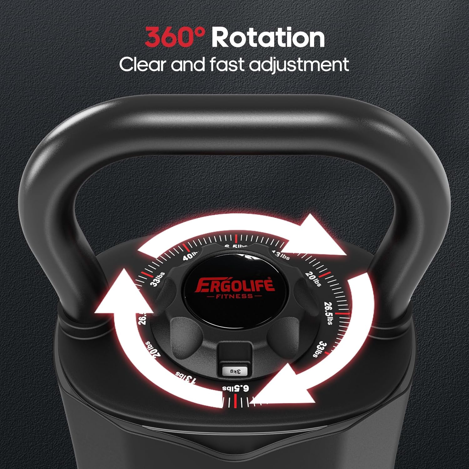 360° Quick-Adjust Dial for Instant Changes:Smooth, precise, and effortless — just twist the 360° dial to switch between weights in seconds. No pins, no plates to swap, just a quick turn to match your workout intensity