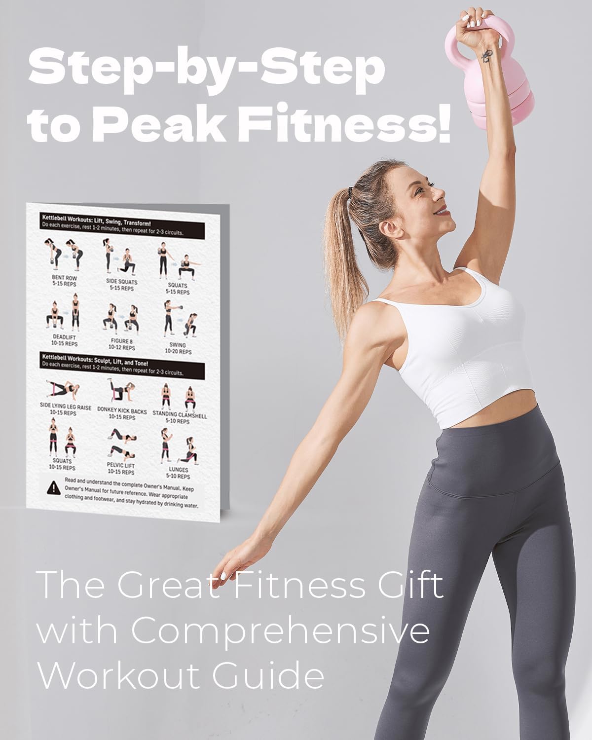 【Comprehensive Workout Guide】Kickstart your fitness journey with our inclusive workout guide packed with detailed exercises specifically tailored for the kettlebell and booty band. Whether you’re aiming to boost strength, increase flexibility, or burn calories, this guide helps you get the most out of every session.