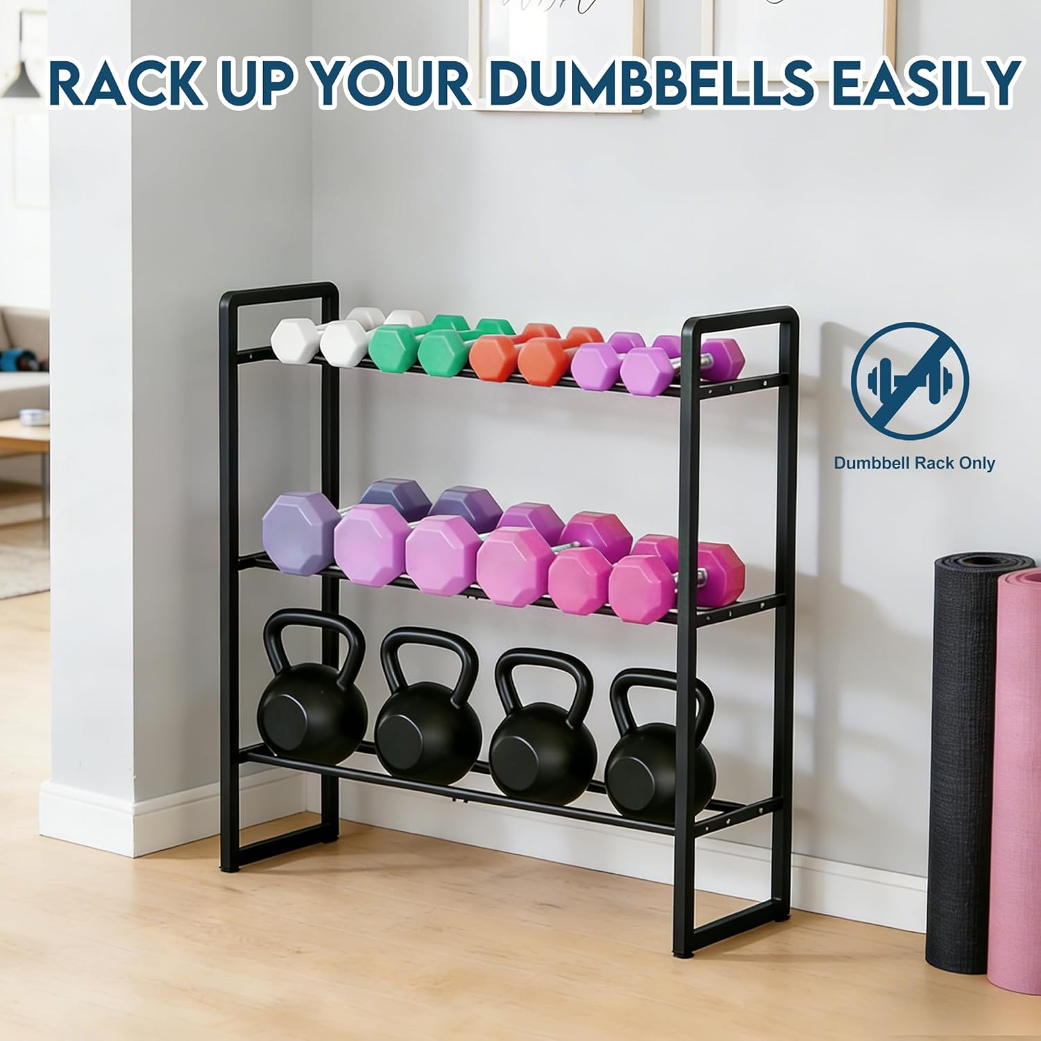 【Three-Tier Storage】Three-tier organization allows you to neatly separate different weights on the dumbbell stand, keeping your fitness area tidy and efficient