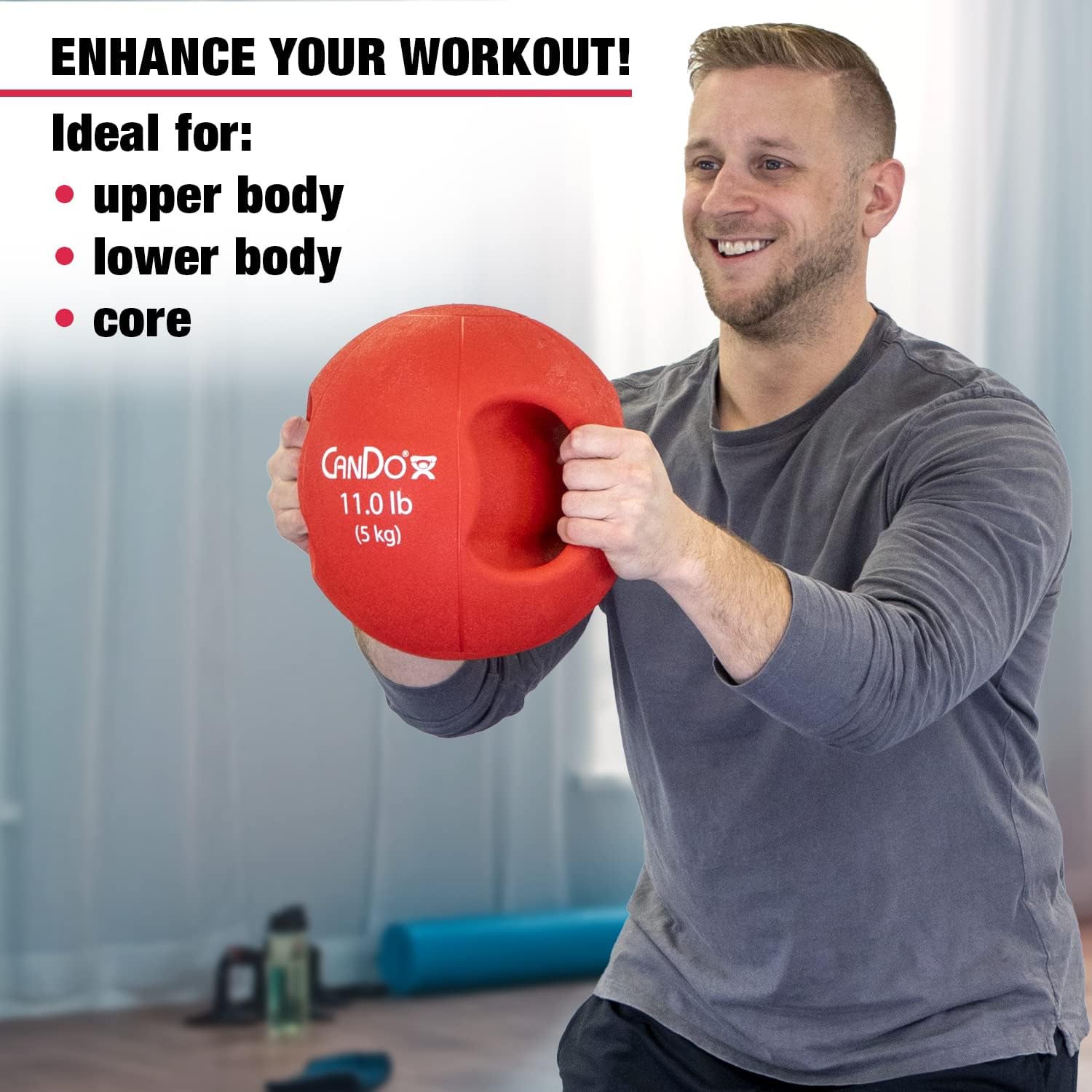 CanDo Molded Handle Medicine Ball is ideal for abdominal training rotational movement and strength training the dual soft grip handle is easy to grip with one or two hands Just the right size handle for a total body workout and perfect for core and torso exercises the handles enable wide ranges of movements Features. Molded Dual Handle Medicine Ball. 5 PieceSpecifications. Weight 58 lbs