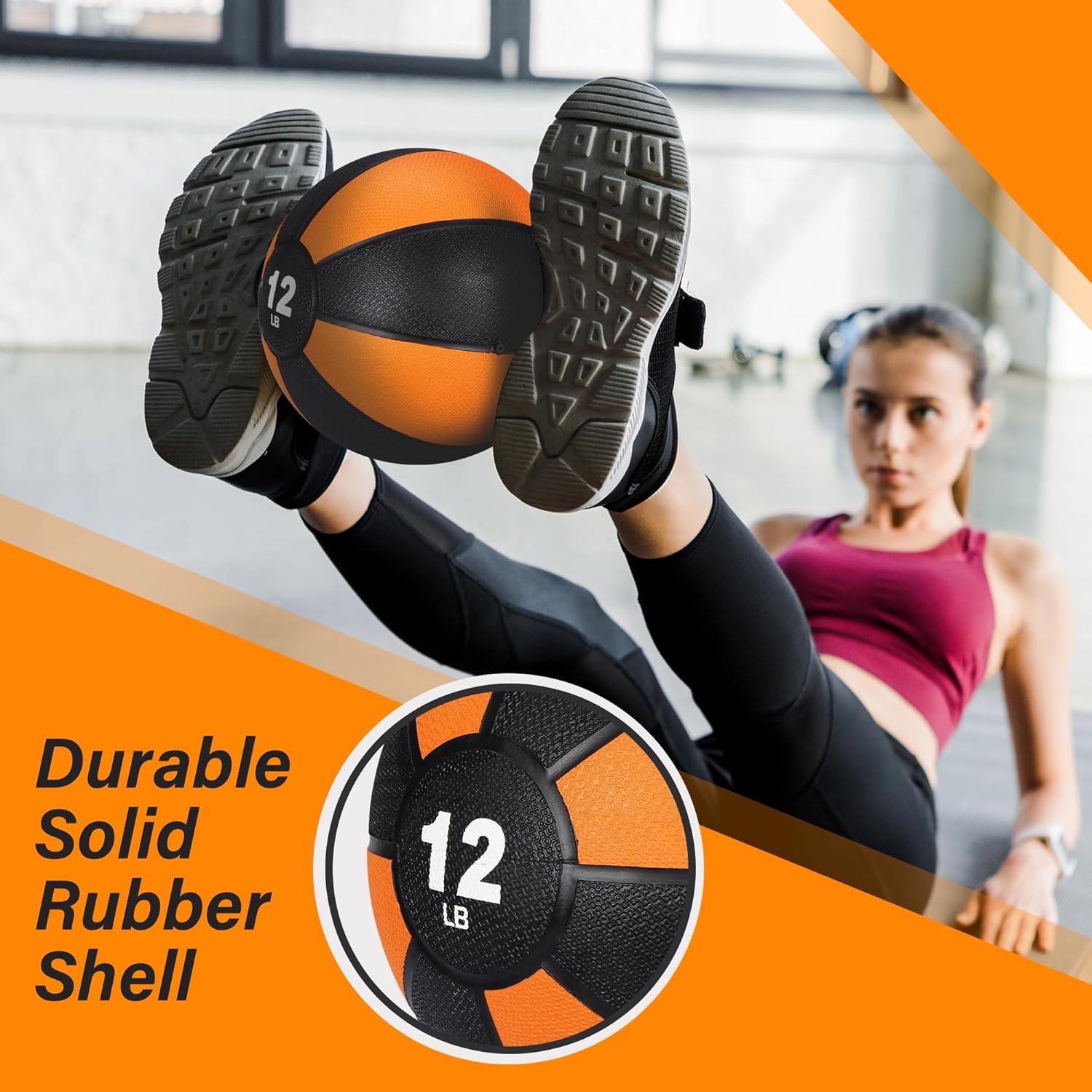 Portable & Workout Free: This small exercise ball is great for resistance exercises. Ideal for home, gym or outdoor use; It can be tossed, bounced or slammed against almost any surface, such as rubber / hardwood floors, grass, artificial turf or even concrete