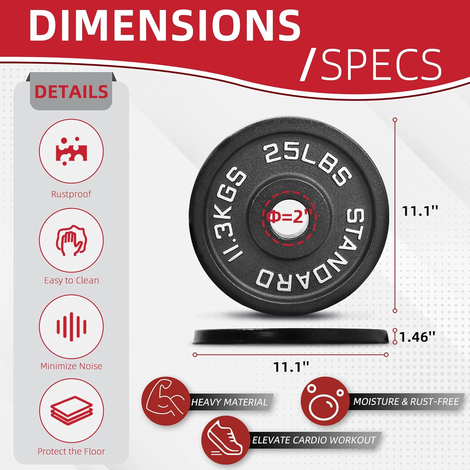 DURABLE CAST IRON BUILD:Made from solid cast iron with a durable black finish, these weight plates are built to resist chipping and rust, ensuring they remain a staple of your home gym for years to come.