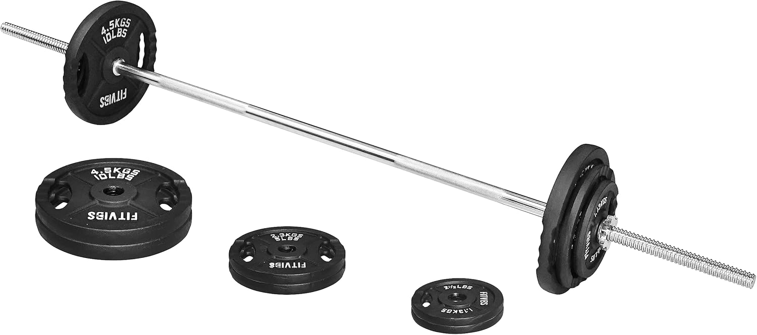 Fitvids Cast Iron Standard Weight Plates Including 5FT Standard Barbell with Star Locks, 45-Pound Set (35 Pounds Plates + 10 Pounds Barbell), Multiple Packages, Style #2