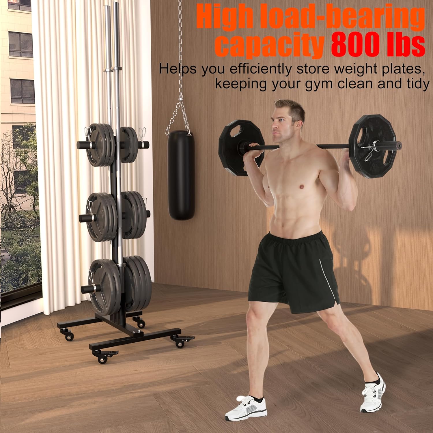 Quick Setup & Easy Mobility: With clear instructions and all necessary hardware included, setup is fast and hassle-free. Smooth-rolling wheels make this olymopic weight plate rack easy to move around your space as needed. The locking wheels ensure the rack stays securely in place once positioned, preventing unwanted movement during use.