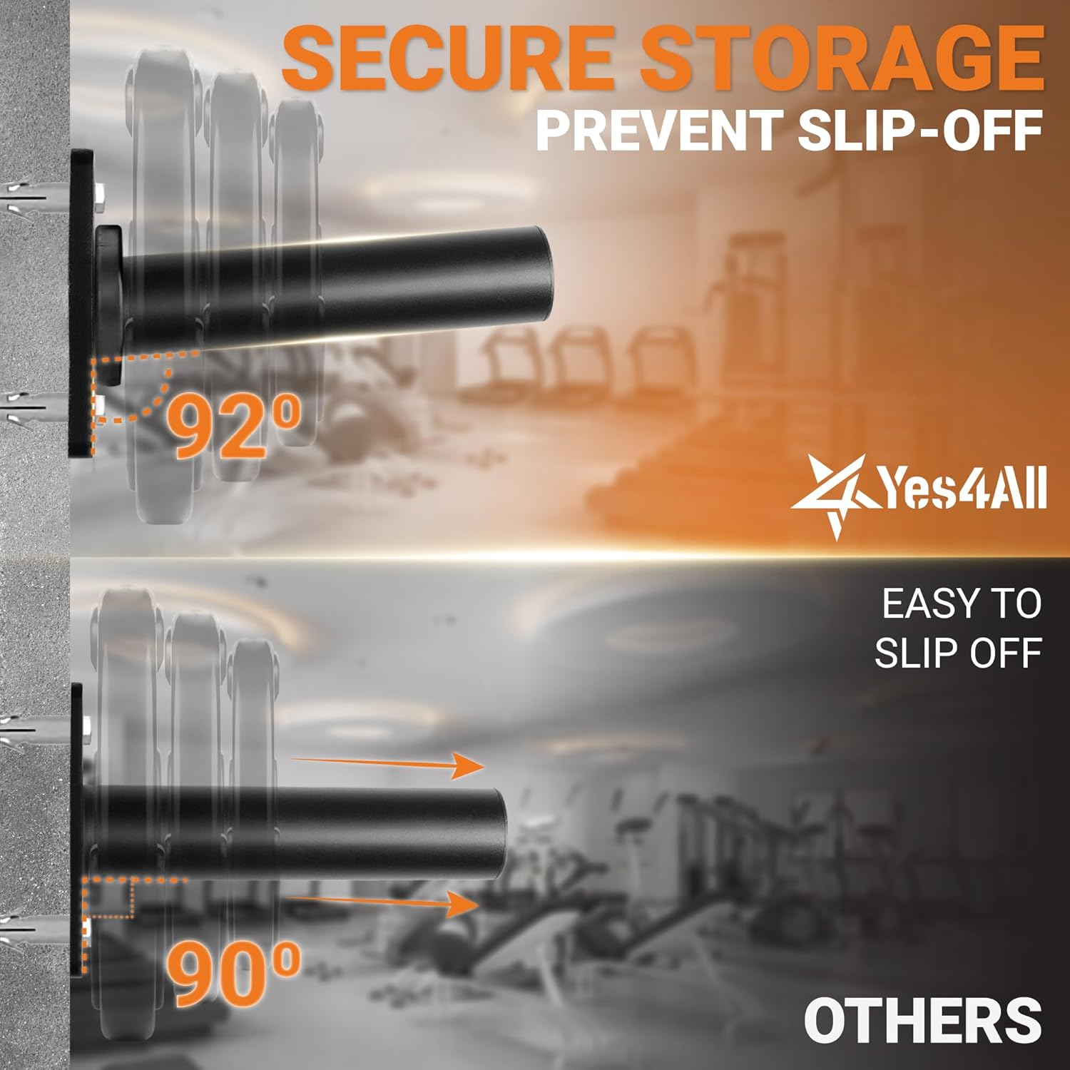 PREVENT SLIP OFF: The weight plate holder is designed with a slight curve upwards as a locking mechanism to prevent weight plates from sliding off; The protective rubber pads reduce scratches and keep your workout area clean