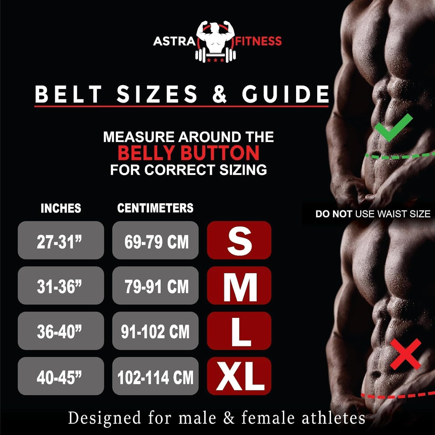 ✅ SIZING AND LIFETIME WARRANTY: ASTRA FITNESS weight lifting belt is available in four waist sizes. Small (27-31 inches), Medium (31-36 inches), Large (36-40 inches), XL (40-45 inches). Don’t use your pants size to determine the size. Measure your waist around naval area to take perfect size. Size down, if between sizes. WE STAND behind our product and we are so confident about the quality of this belt that we offer LIFE TIME WARRANTY. Do Not return & Send us a message we will replace for free.