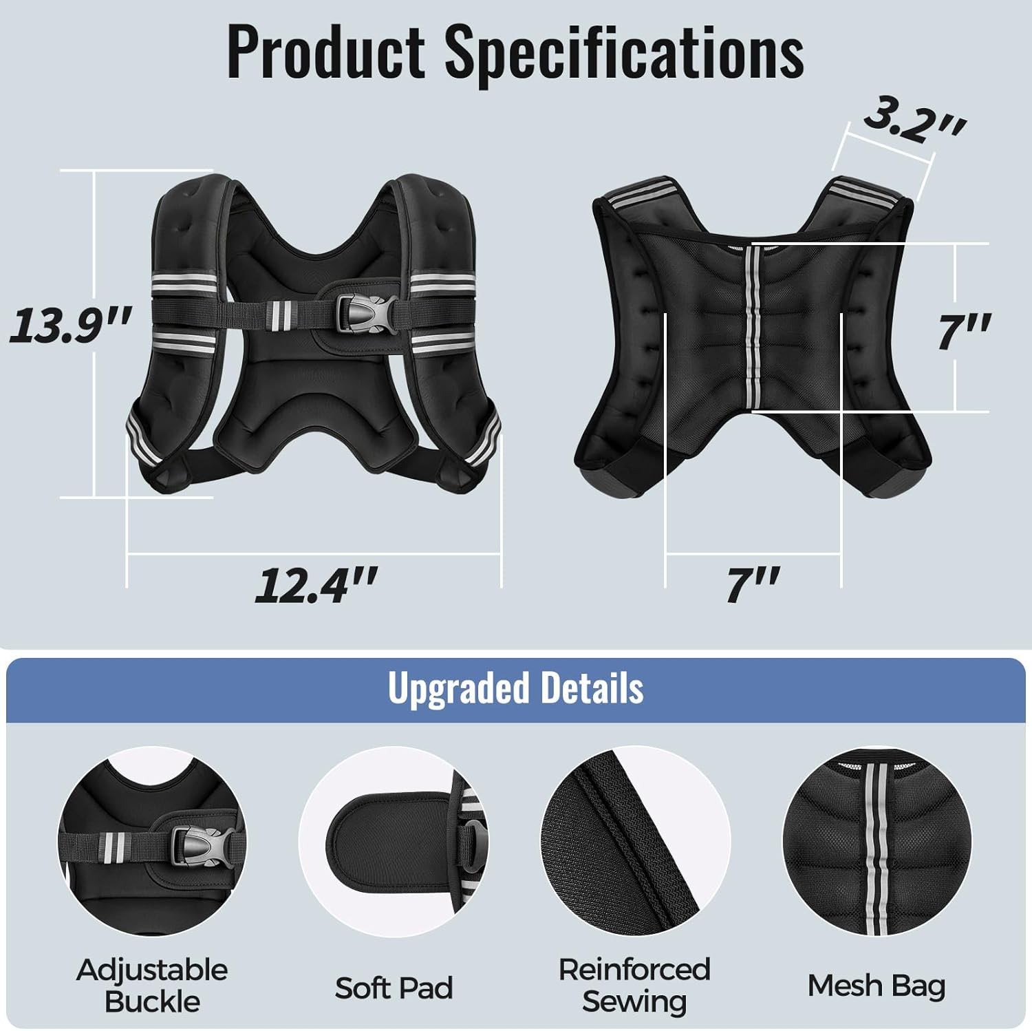 【Durable & Safe】 Double-stitched reinforced seams withstand rigorous movements, while the reasonable weight distribution reduces shoulder and back overload—minimizes sports injury risks.