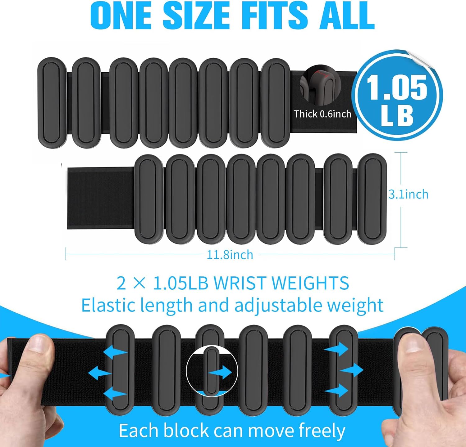 Adjustable weight: You can customize the weight of each wrist weight by adding or removing the built-in formed steel pieces. Each piece weighs 0.13 pounds and the total weight is 1.05 pounds. You can adjust the weight according to your fitness level and preference