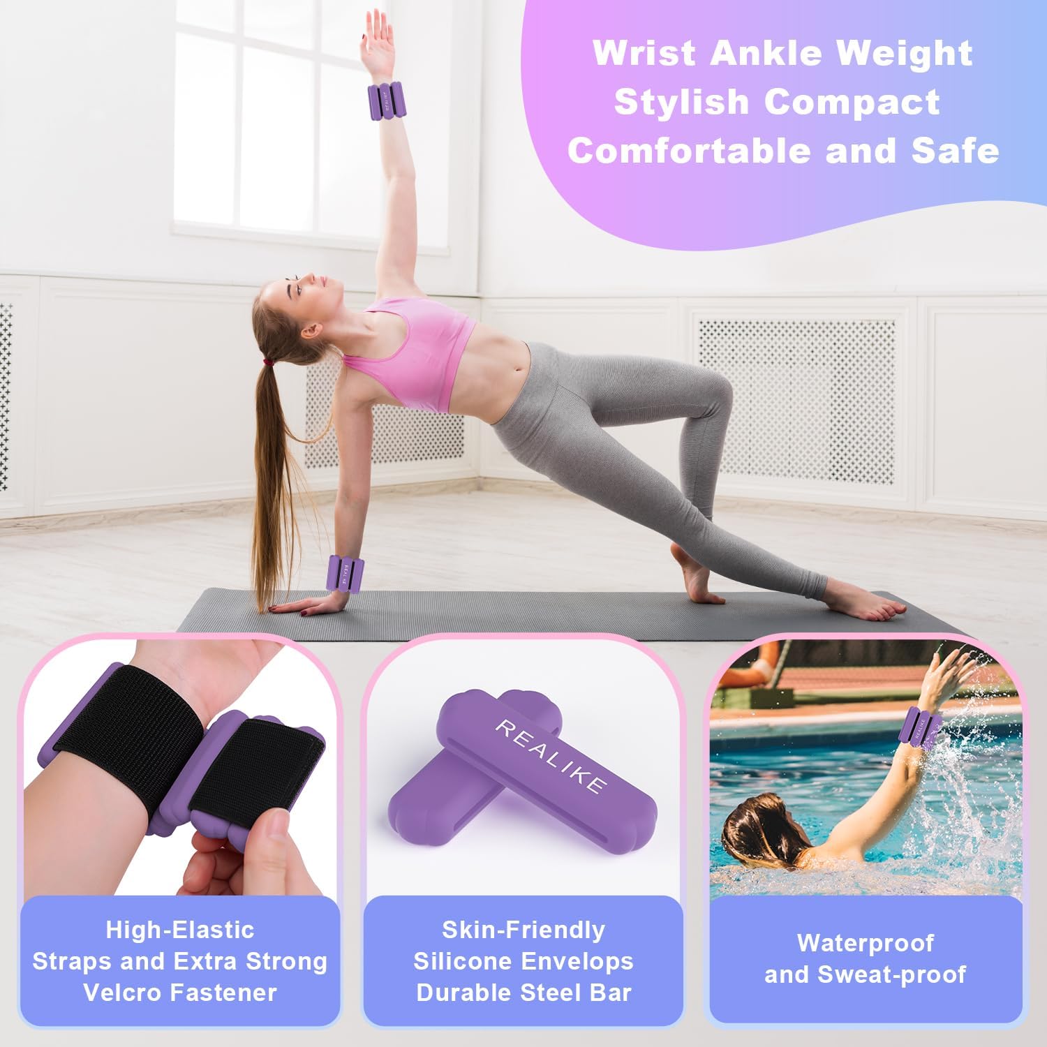 Multifunctional Wrist and Ankle Weights: REALIKE wrist weights are suitable for a variety of exercises such as yoga, dance, ballet, Pilates, aerobic exercise, walking, resistance training, rehabilitation training, and more, making your training more efficient and interesting whether you are at the gym, at home, or in the office.