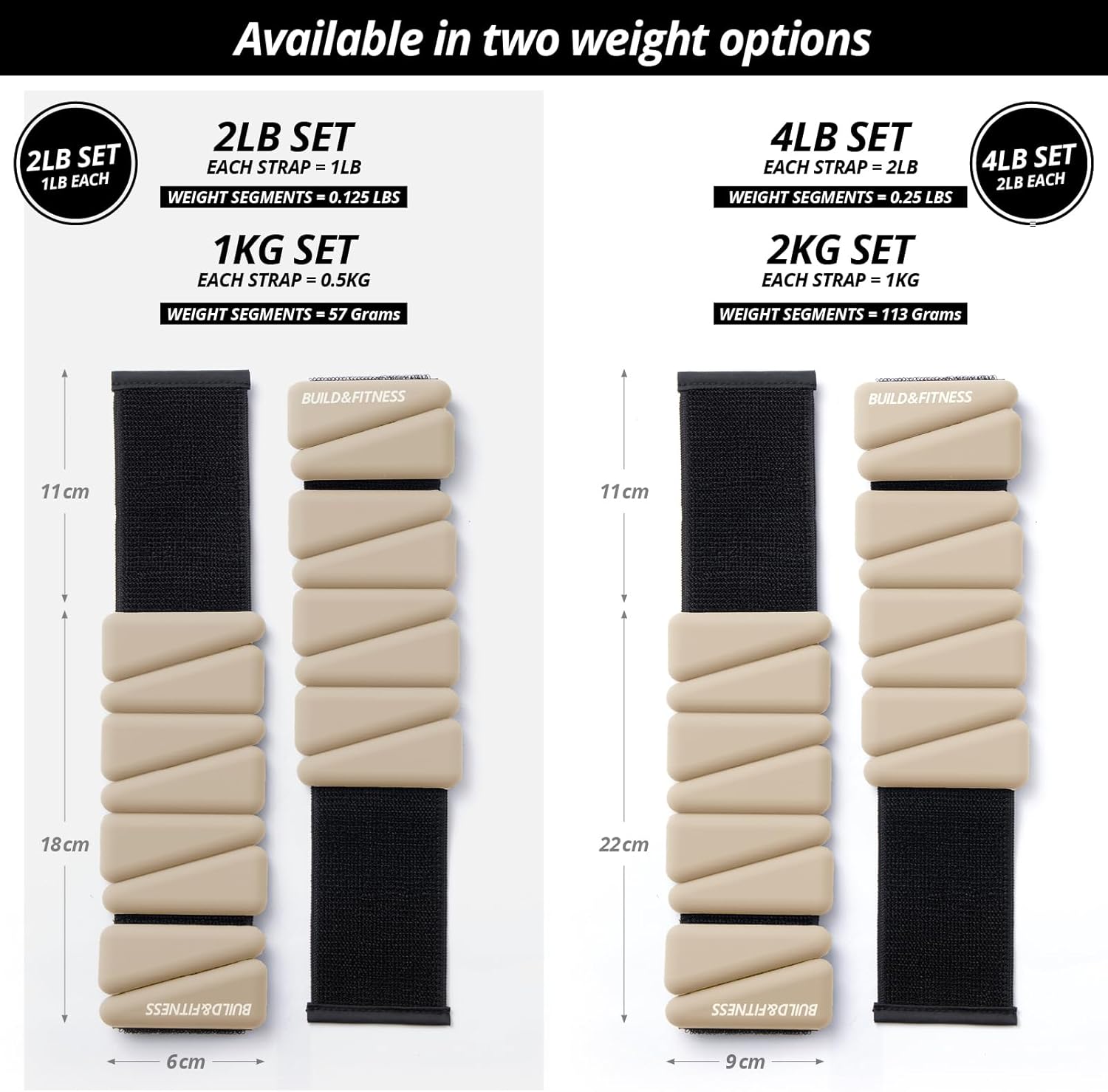 WHAT YOU GET – Set of 2 bands that weigh 2LB / 1KG total (1LB each) or 4LB / 2KG total (2LB each). They come in their own zip case so you can easily pack into your gym bag. Also Satisfaction Guarantee with 5 star customer care.