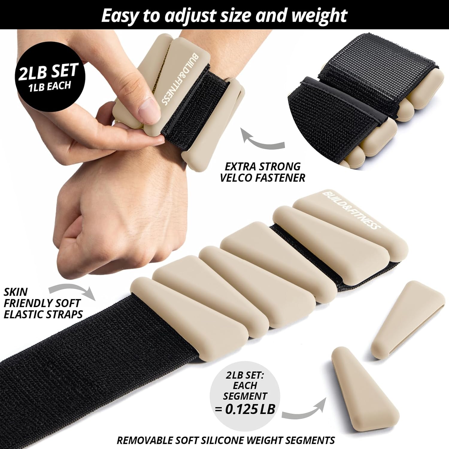 SECURE & COMFORTABLE – To fit, hold the weights against your body, wrap the elastic strap around your wrist / ankle, and firmly secure the soft velcro straps.