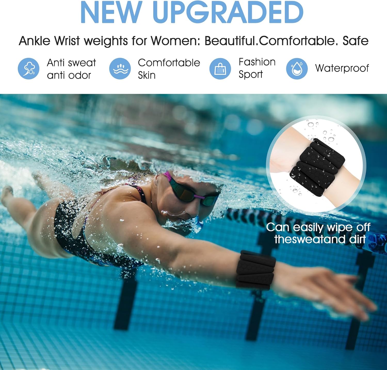 【WRIST WEIGHTS BRACELETS】: Wrist weights set include 2 adjustable silicone weight bracelets, the wrist weight lenght x wide size are 30CM/11.7IN x 7CM/2.7IN, 1lb weight for each one and adjustable high-stretch bands and robust velcro closures to prevent slide during workouts. It is suitable wrist/ankle circumferences from 7.IN to 11IN and can to adapt users of all sizes, basic exercise for women or primary need exercisers in daily life, it is a perfect choice for getting healthy life.