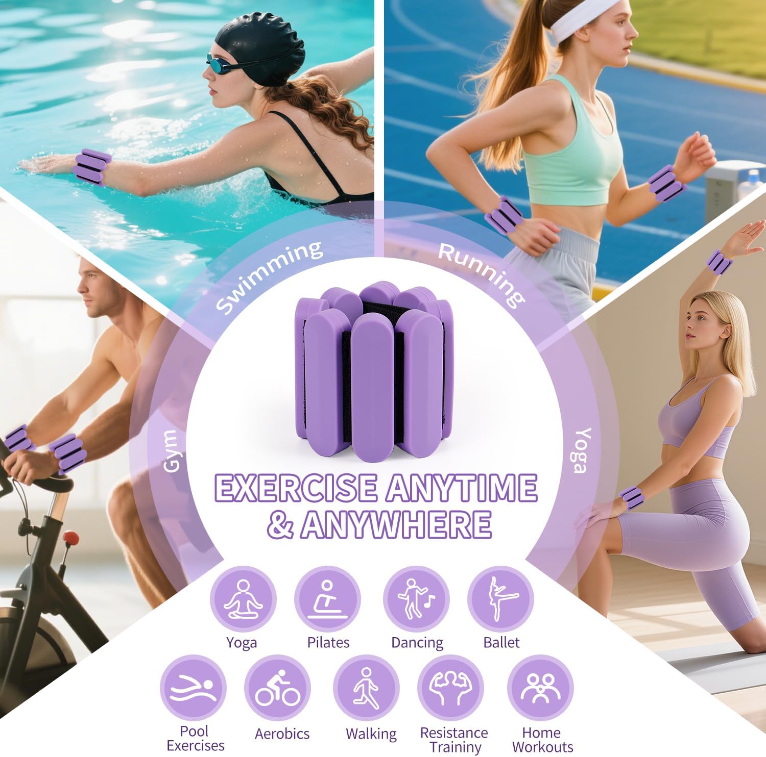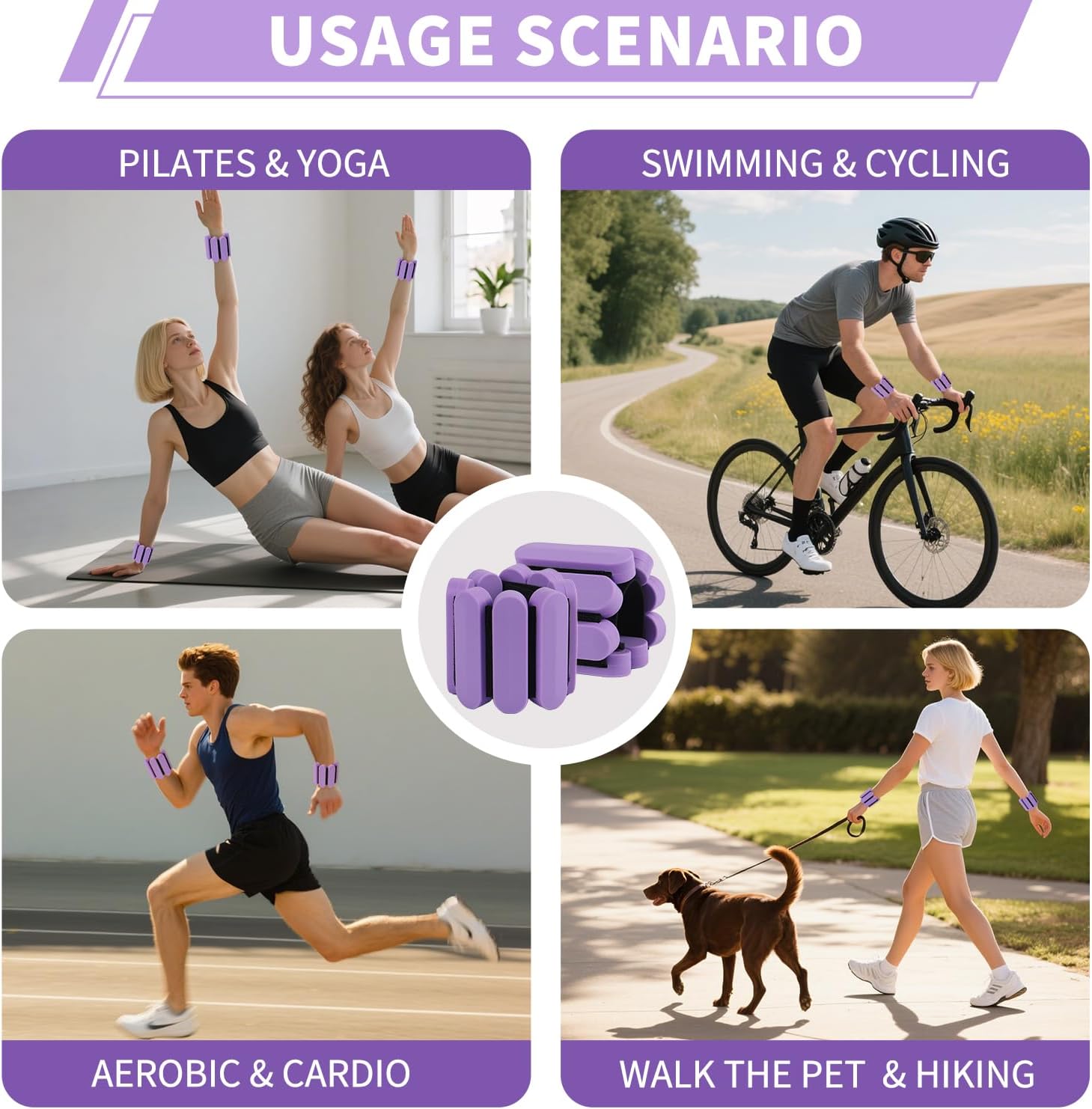 Wrist Weights – Adjustable Ankle Wrist Weights for Women & Men – Set of Weighted Bangles 2 lbs (1 lb Each) | Arm and Leg Weights for Pilates, Yoga, Running & Walking (Purple)