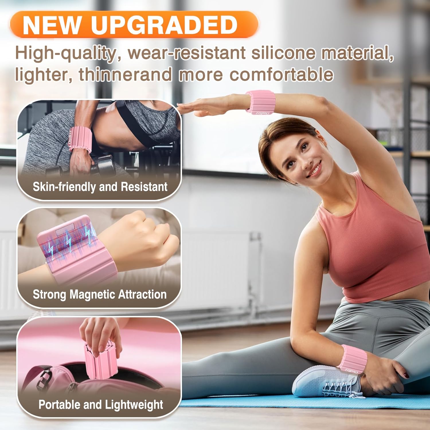 【Upgraded Magnetic Wrist & Ankle Weight Set】These wrist and ankle weights for women men feature innovative magnetic technology,Set include 2 silicone weight bracelets (1.1LB each)No straps, no struggle—just a simple magnetic snap.If 1.1LB feels too light, wear two weight bands on one wrist/ankle to double the resistance