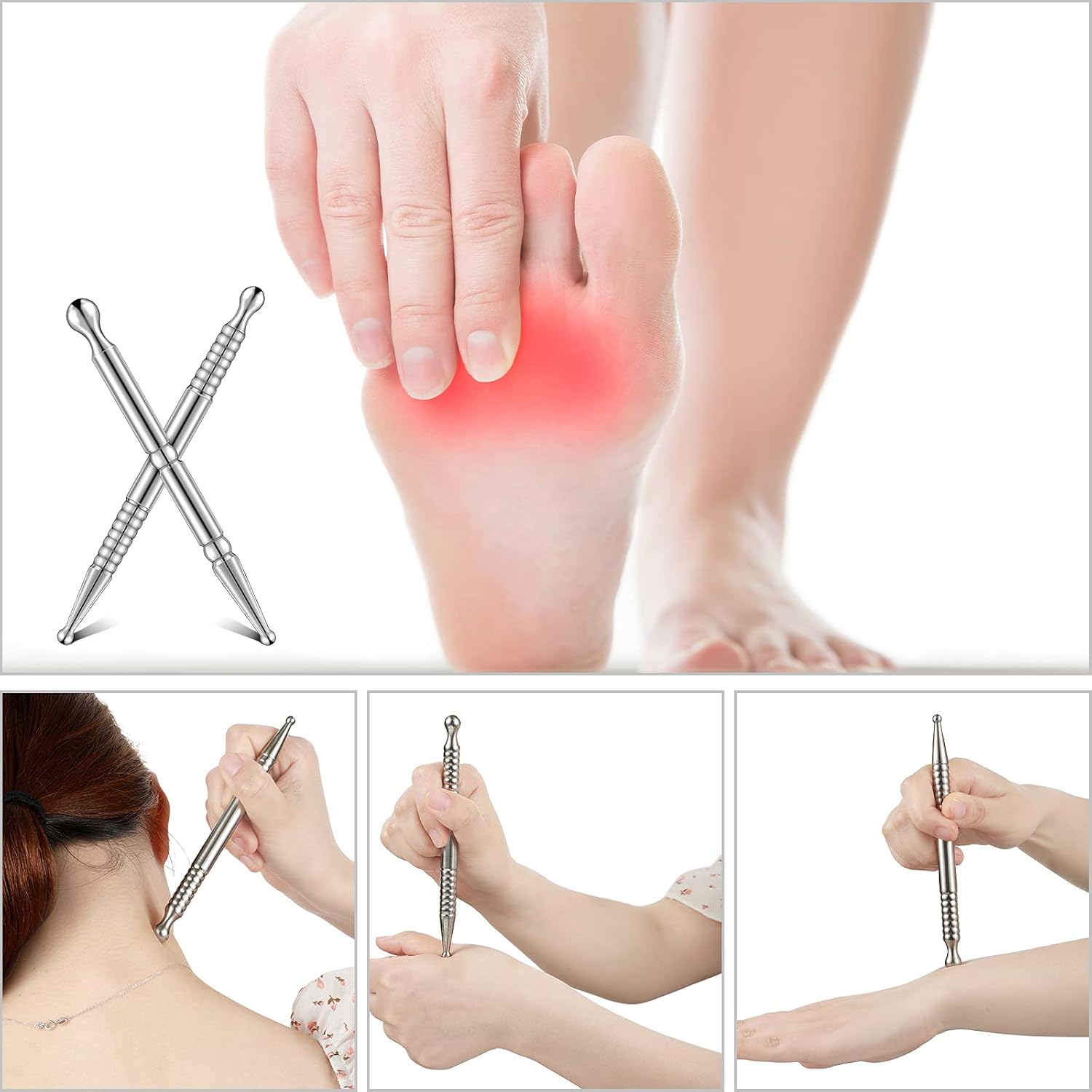 How to use: there are 2 ways to use the massage tool, two round massage heads are ideal for effective pressure points to relieve tension headaches and muscle aches in your body