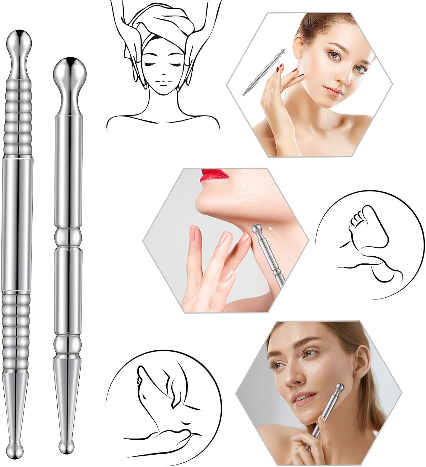 2 x Stainless steel massage pens