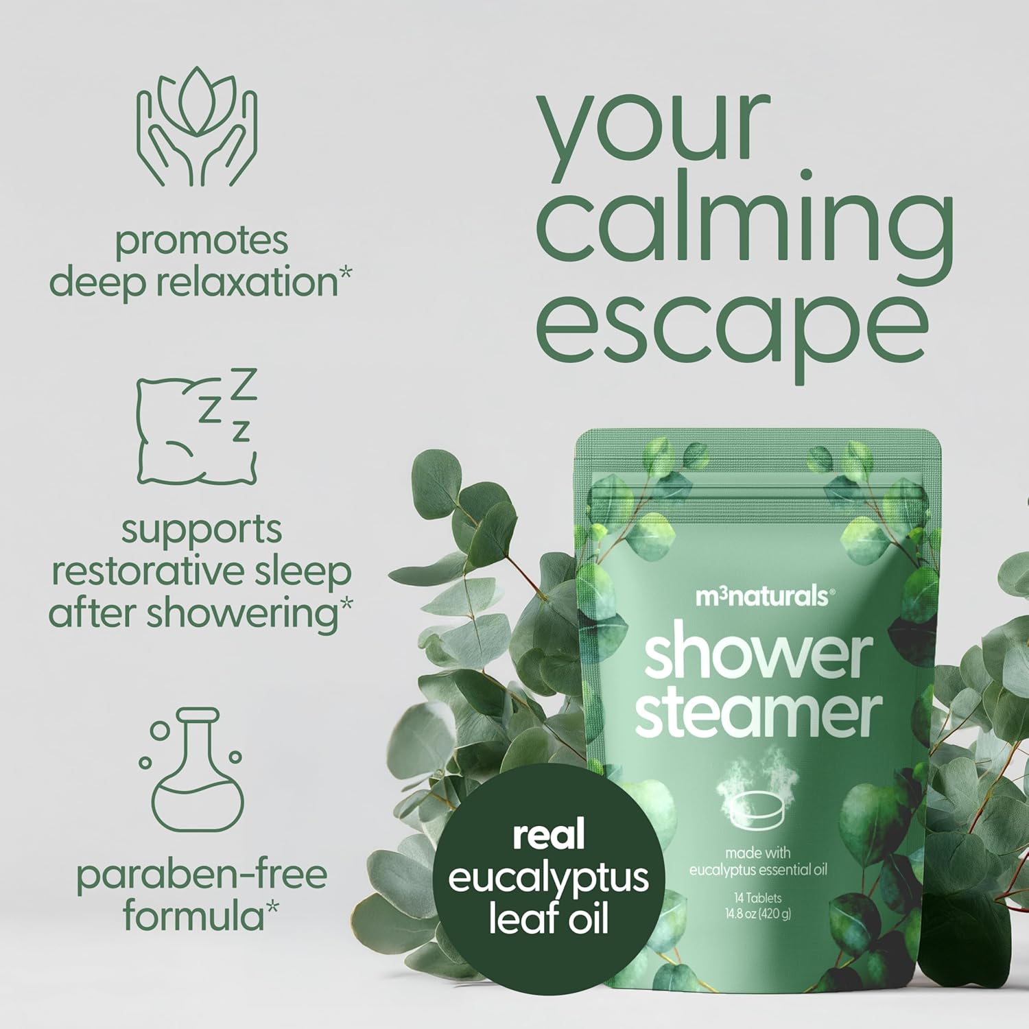 Be the first to review “Eucalyptus Aromatherapy Shower Steamers – Supports Sinus Relief, Relaxation, Sleep, and Post-Workout Recovery – 14 Individually Wrapped Essential Oil Tablets by M3”