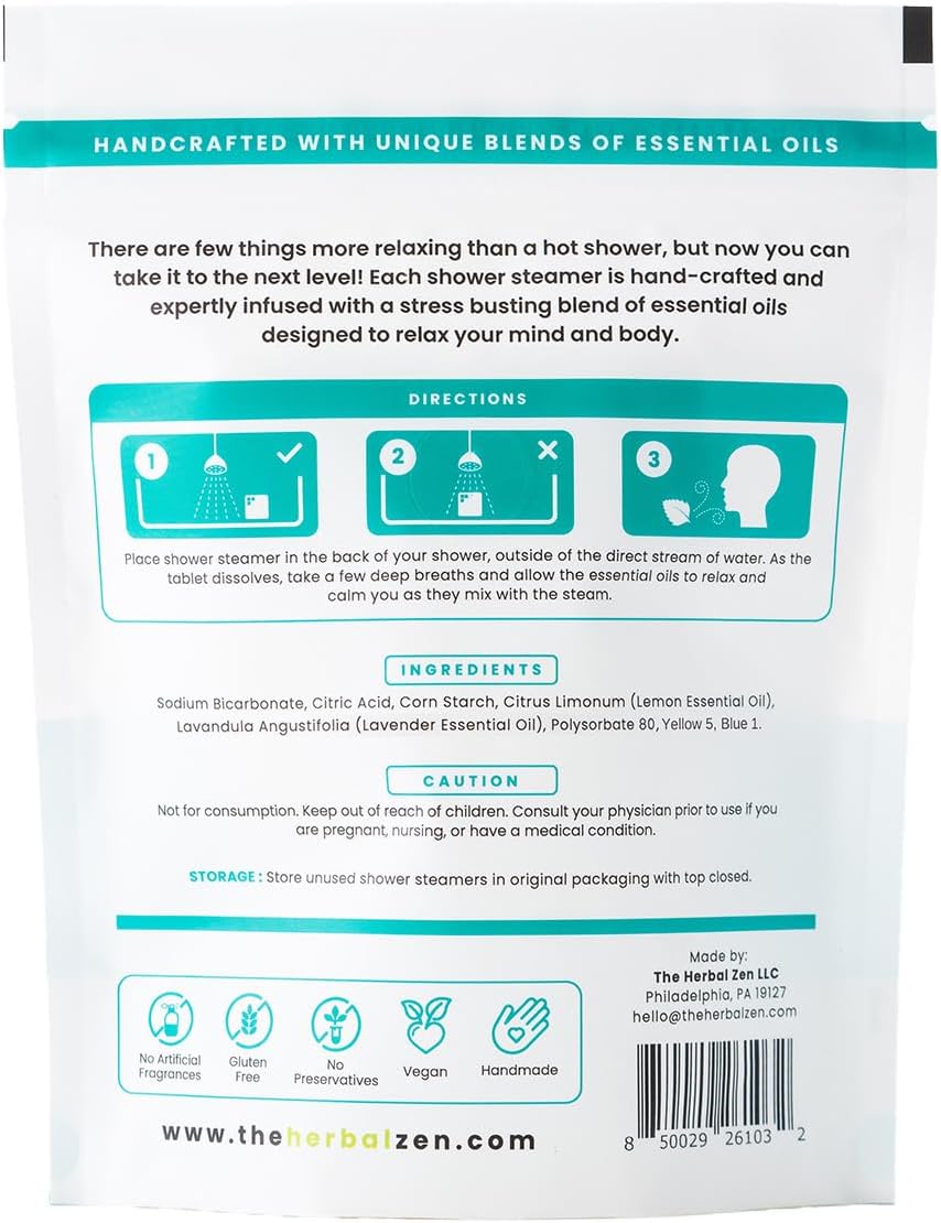 AT HOME SPA EXPERIENCE: Transform your daily shower into a calming self-care ritual with Herbal Zen Shower Steamers. Infused with 100% pure essential oils, our shower melts deliver a luxurious spa experience—right in your own bathroom. Affordable, convenient, and soothing.