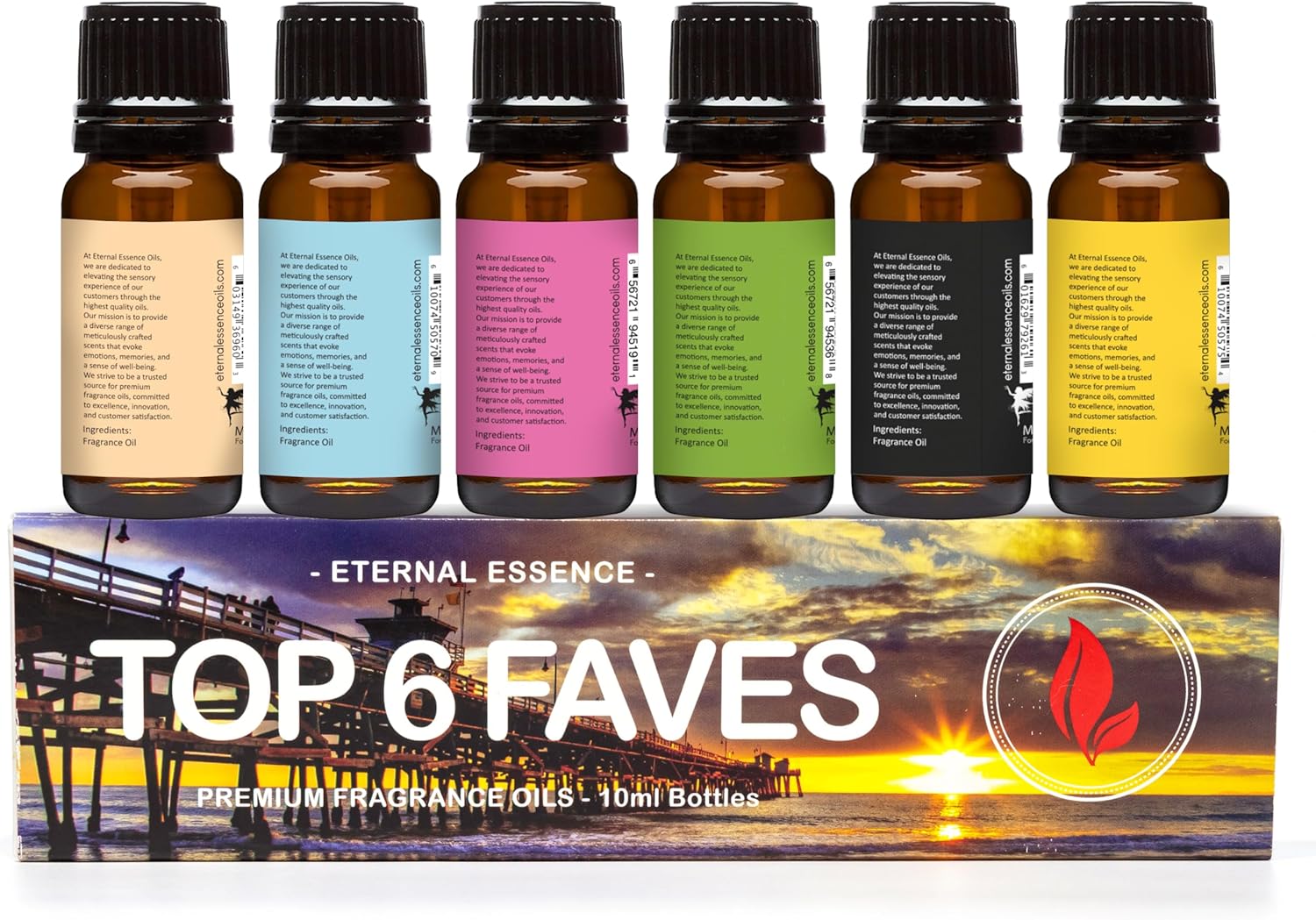 TOP 6 FAVES SCENTED OILS: Fruity, citrusy, and vanilla smelling scents formulated for making candles, soaps, air freshener sprays, aromatherapy diffusers, dryer sheets and cleaning products. These seasonal essential scents make the perfect gift for the whole family!