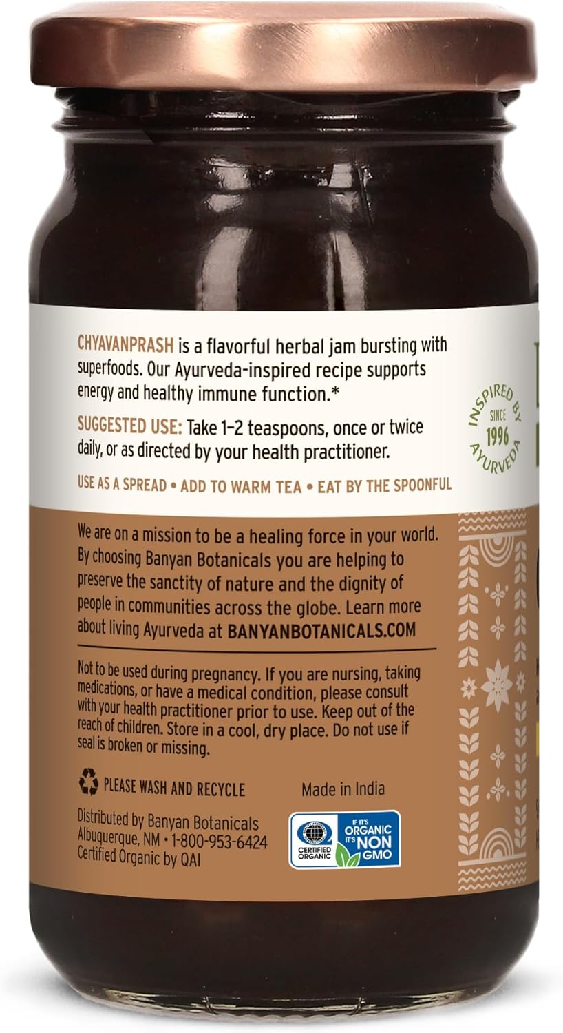 Banyan Botanicals Chyawanprash – Organic Ayurvedic Herbal Jam with Raw Honey, Amla & Ashwagandha – Vitalizing Superfood Immune Support Supplement* – 8.6 oz – Non GMO Sustainably Sourced Gluten Free