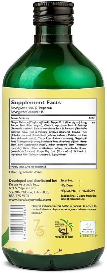 Kerala Ayurveda Punarnavasavam – Ayurvedic Liquid Supplement – Supports Healthy Elimination of Body Fluid, Maintains Optimal Fluid Balance & Balances Tridoshas, 15.2 Fl Oz