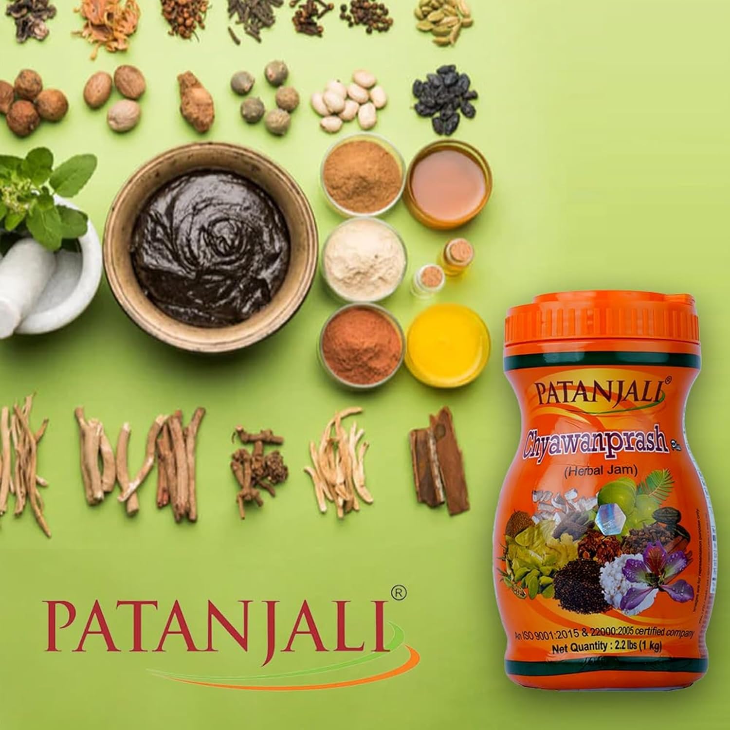 Patanjali Special Chyawanprash is a unique blend of amla, ghee, honey, sesame oil, and over 35 herbs and spices, including Bilva, Agnimantha, Syonaka, etc